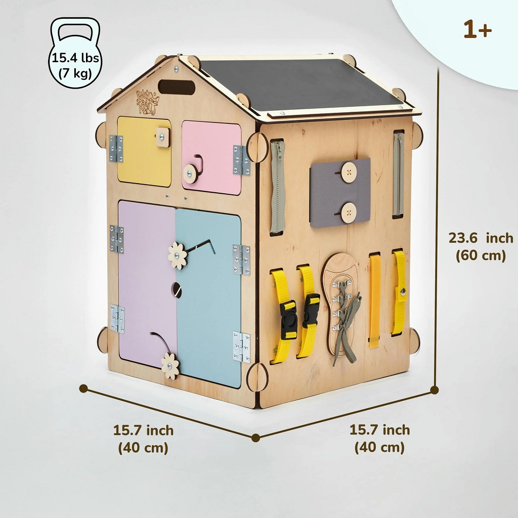 Hrací domeček BusyKids je Montessori hračka ideální pro každé dítě. Pedagogika Montessori podporuje učení dětí zábavným a přirozeným způsobem, rozvíjí jejich kreativitu, jemnou motoriku a logické myšlení. Pokud hledáte kvalitní hračku pro batole, která je bude bavit dlouhé roky, stane se jeho společníkem a později ji využijí i sourozenci, pak je hrací domeček BusyKids House tou ideální volbou.