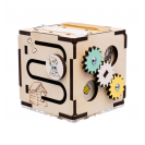 Interaktivní dřevěná kostka od BusyKids je ideální hračkou pro zvědavé děti od 1 roku. Na každé ze šesti stran nabízí různé aktivity: otáčecí elementy, zipy, suché zipy a spoustu dalších aktivit, které rozvíjejí smyslové a motorické dovednosti.