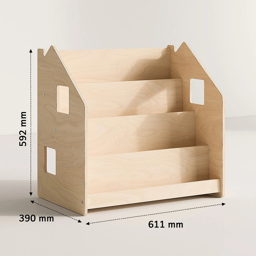 Tento stojan na knihy je navržen tak, aby podporoval dětskou samostatnost a rozvíjel jejich zájem o čtení. Díky tomu, že jsou knížky vidět obálkami dopředu, děti si snadno vyberou tu, která je zaujme a po přečtení ji zase jednoduše vrátí na místo. Police nabízí čtyři prostorné regály a zadní úložný prostor vhodný pro knihy či hračky. Robustní a bezpečná konstrukce s pečlivě zaoblenými hranami je ošetřena lakem na vodní bázi. Díky jednoduchému, čistému designu krásně zapadne do každého interiéru.