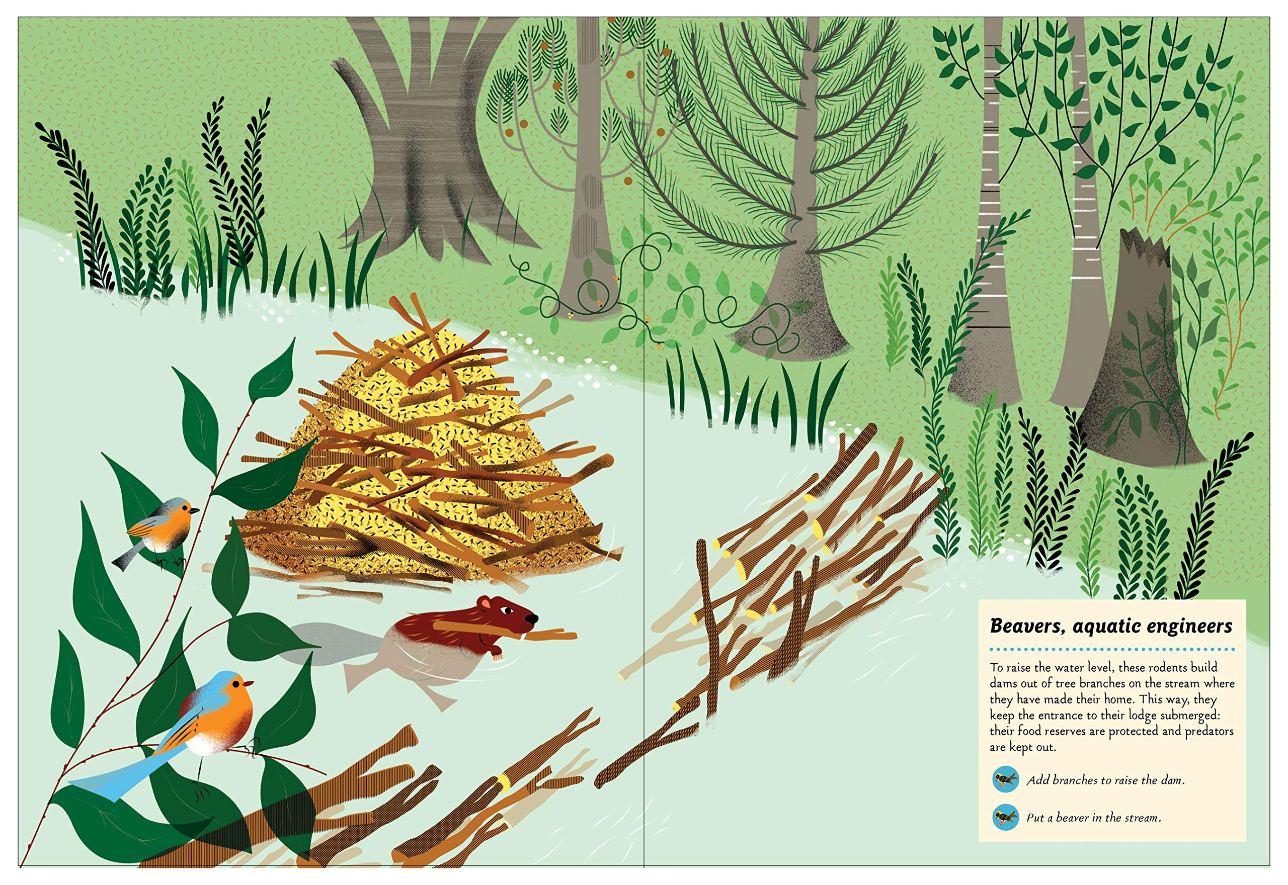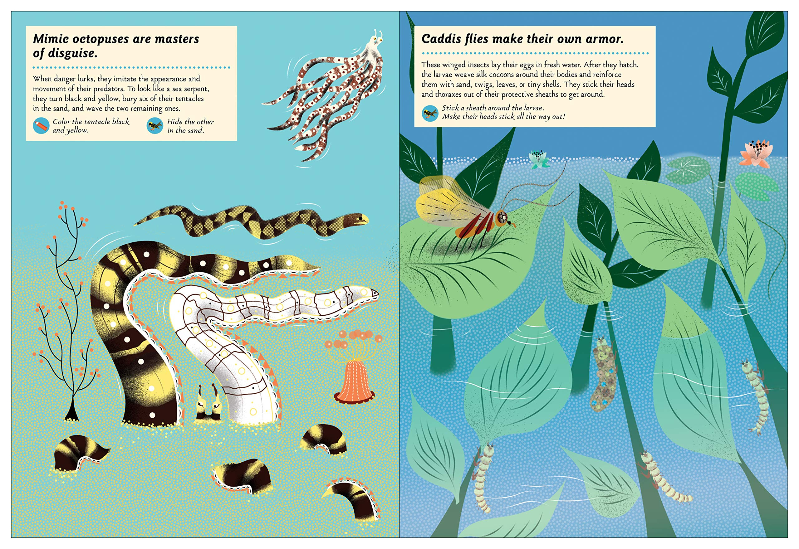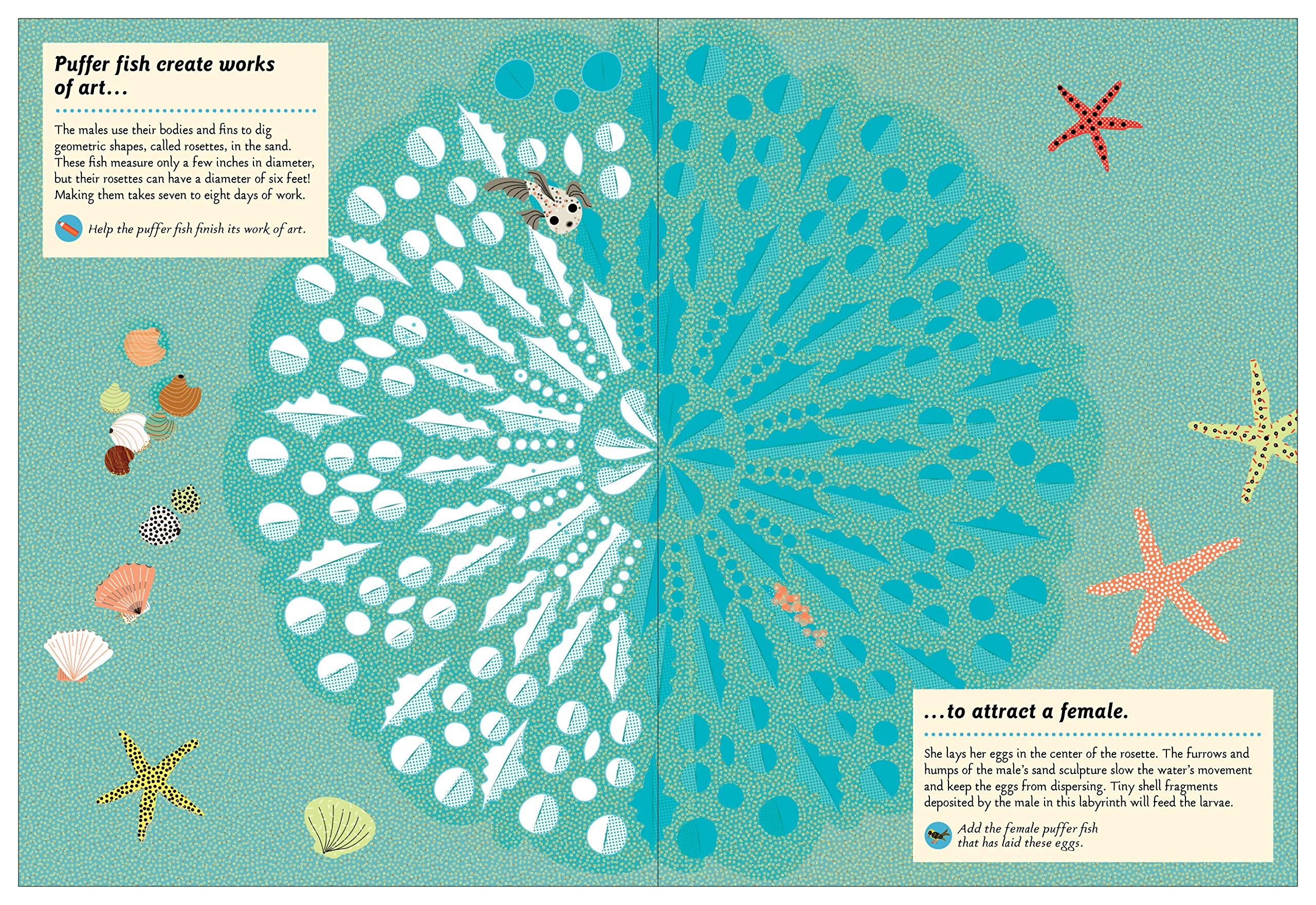 Věděli jste, že čtverzubci vyhrabávají v písku geometrické tvary, že chobotnice napodobují své predátory nebo že ptáci snovači vytvářejí nejsložitější hnízda na světě – a dokáží dokonce vázat uzly? Naučte se zábavná fakta při vybarvování chapadel chobotnice, vložte kořist do pavučiny nebo přidávejte buňky do včelího plástu. Tato kniha vám představí různé druhy vynalézavých zvířat prostřednictvím řady interaktivních aktivit a samolepek. Kniha aktivit děti zabaví na dlouhé hodiny. Nakonec otestujte své nové znalosti v krátkém kvízu.