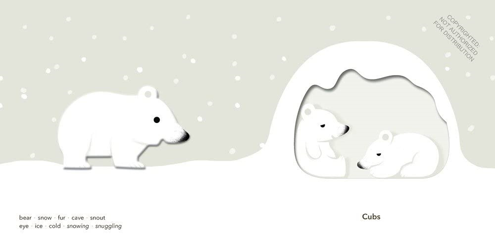 Interaktivní kniha ze série dotkni se a pociť kombinuje vysoce kvalitní textury na každé stránce s přitažlivým vysoce působivým uměním. Pro dobrý vývoj dětí je prokázáno, že děti se nejlépe učí, když získávají znalosti prostřednictvím více smyslů. Knížka podněcuje představivost nejmladších čtenářů a inspiruje, aby poznávali jejich svět. Objevte ledního medvěda na jedné straně a na druhé straně vykrojené doupě. Jednoduché slova na klasickém bílém pozadí tento vícerozměrný přístup pomáhá dětem rozumět pomocí zraku, sluchu a hmatu. Knížka je vhodnou pomůckou k procvičování angličtiny. Vyrobeno z papíru FSC a potištěno rostlinnými inkousty.