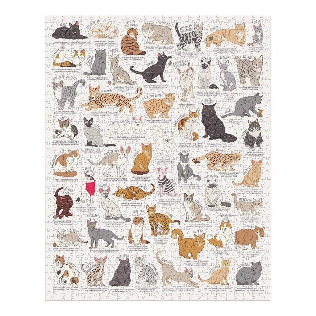 Užijte si hodiny zábavy s oblíbenými plemeny koček. Skládáním odhalíte na pět desítek různých, ručně ilustrovaných domácích koček a poznáte přitom i jejich typické vlastnosti. Ideální dárek pro každého milovníka těchto šelem! Po sestavení puzzle můžete zarámováním proměnit v obraz a pověsit na stěnu. Skládačka je spolu s návodným obrázkem balena v originálním kartónovém tubusu.