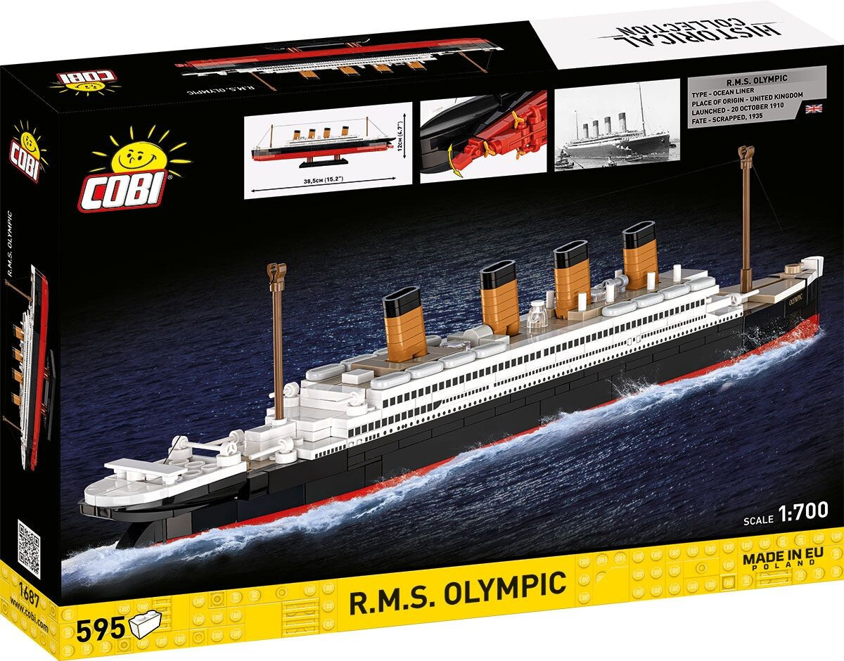 R.M.S. Olympic byl britský transatlantik společnosti White Star Line, postavený v loděnici Harland & Wolff v Belfastu jako první ze slavné trojice lodí Olympic–Titanic–Britannic. Do služby vstoupil v roce 1911 a po více než dvě desetiletí patřil k nejspolehlivějším a nejluxusnějším osobním lodím své doby, díky čemuž si vysloužil přezdívku „Old Reliable“. Během první světové války sloužil jako vojenský transport a v roce 1918 se zapsal do historie potopením německé ponorky U-103. Po válce se vrátil k civilní přepravě cestujících a zůstal symbolem britské námořní dominance a technické vyspělosti až do svého vyřazení v roce 1935. Stavebnice COBI nabízí jedinečnou možnost připomenout si tento ikonický parník v kompaktním a sběratelském provedení.