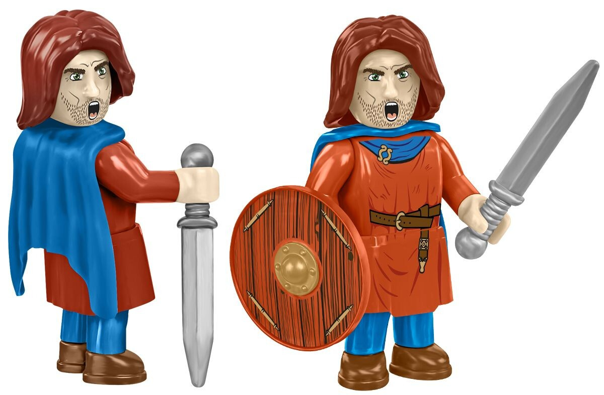 V balení najdete 3 figurky: římského legionáře ve zbroji a dva galské bojovníky. Nechybí ani množství detailních doplňků – zástava s římským orlem Aquila, sudy, rostliny, schody nebo palisáda. Všechny kostky mají trvalý potisk – žádné nálepky!