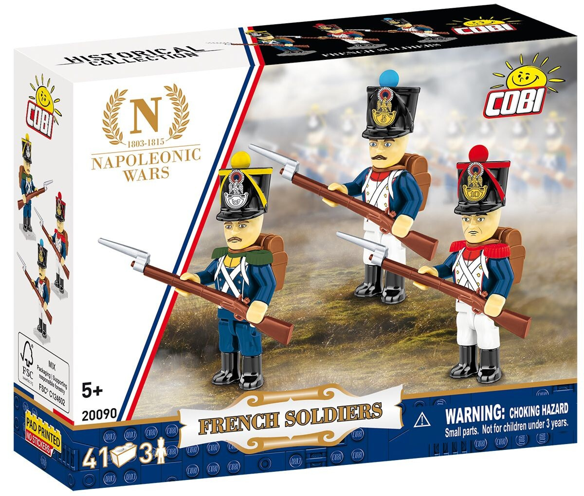 Tato kompaktní stavebnice ze série Napoleonic Wars obsahuje 41 dílků a 3 detailně zpracované figurky francouzských pěšáků z doby napoleonských válek. Každý voják je vybaven realistickými doplňky – od historicky přesných uniforem po zbraně s bajonety, epolety a charakteristické čáky. Díky vysoce kvalitnímu zpracování, trvanlivým potiskům a novým formám čepic, batohů a karabin je tento set ideální jak pro dětskou hru, tak i pro sběratelskou diorámu.