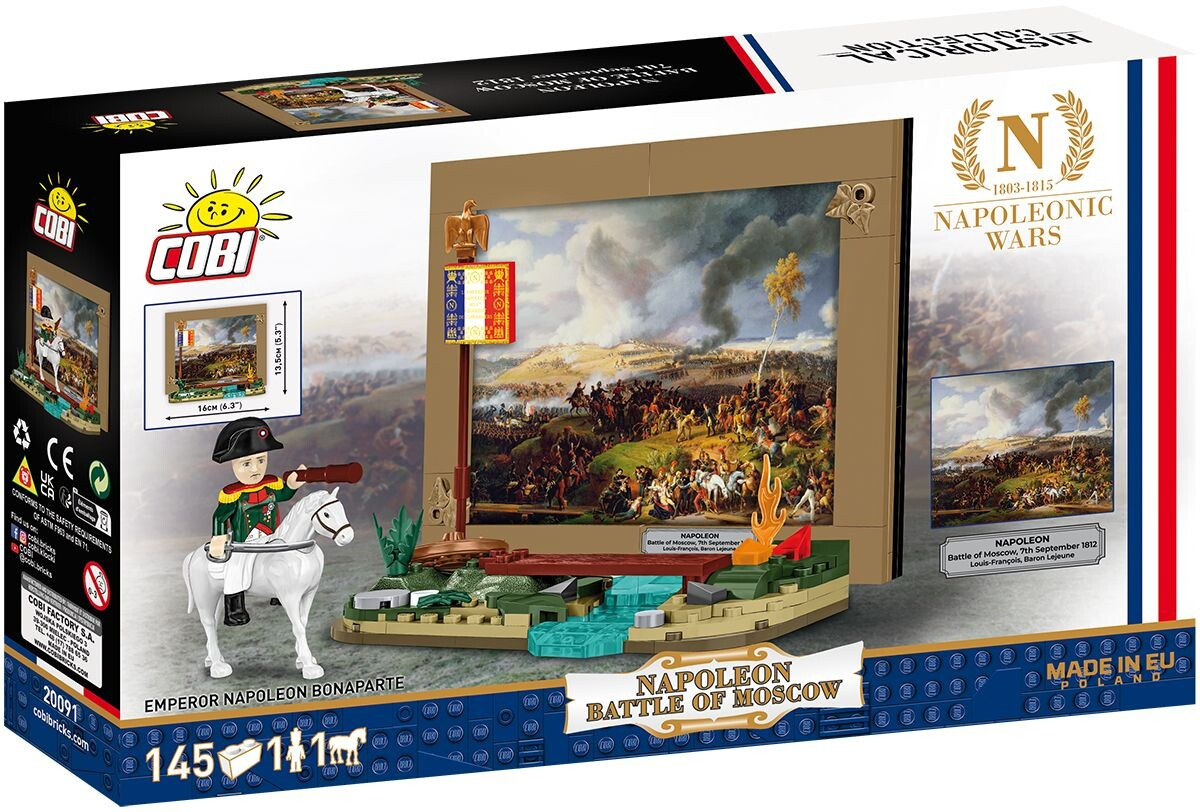 Bitva u Borodina byla nejkrvavějším střetem napoleonských válek a klíčovým momentem tažení do Ruska. Proti sobě stálo přes čtvrt milionu vojáků. I když Napoleon získal taktické vítězství a otevřel si cestu k Moskvě, nedokázal zasadit rozhodující úder. Ruská armáda ustoupila, Moskva byla opuštěna a později vypálena. Bitva se stala symbolem odvahy, obětí a začátkem Napoleonova pádu. COBI touto stavebnicí vzdává hold dramatickému okamžiku evropských dějin.