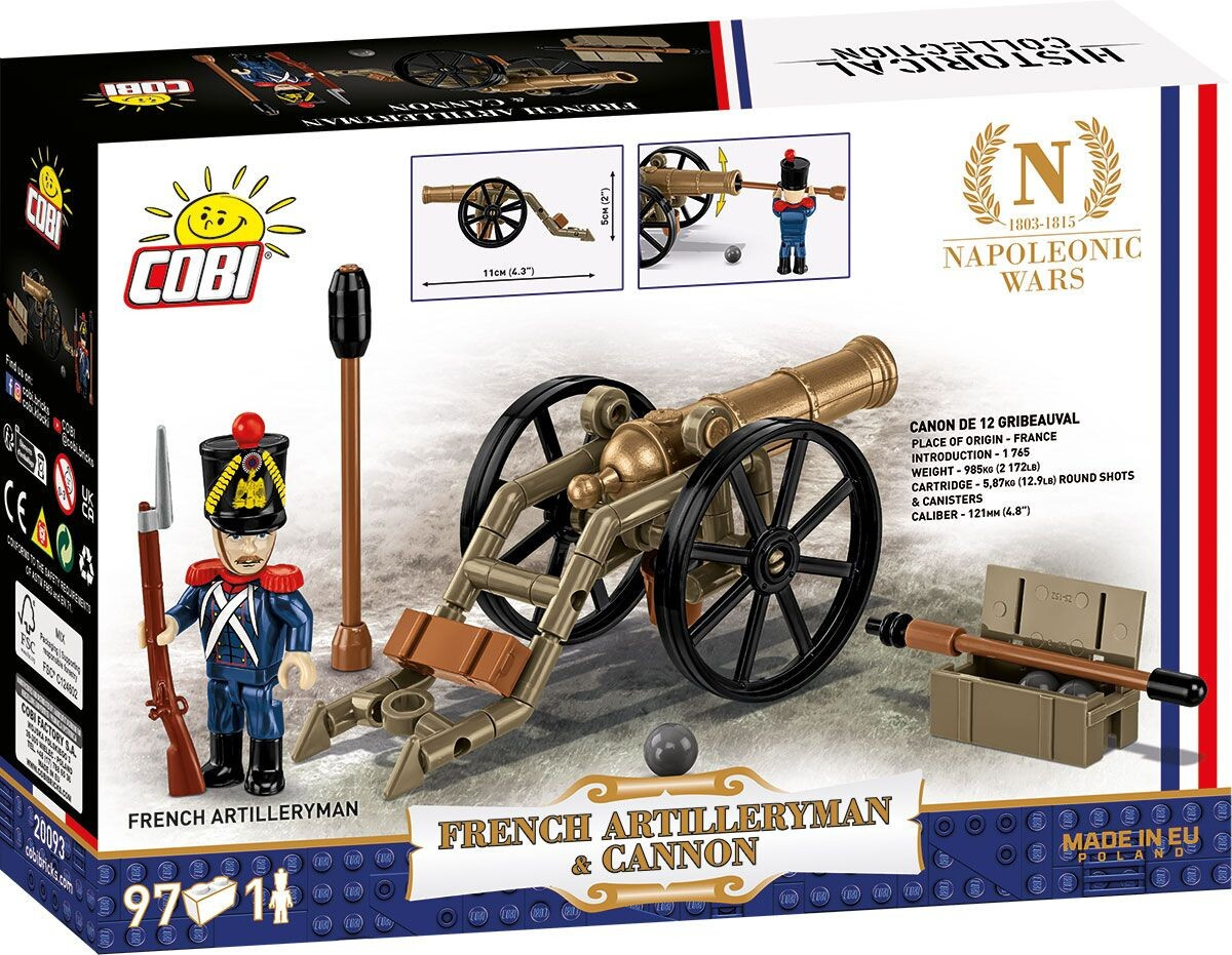 Vytvořte si vlastní kousek napoleonské historie s realistickým modelem dvanáctiliberního děla systému Gribeauval. Stavebnice obsahuje 97 kvalitních kostek a po sestavení měří model 15,5 cm na délku, 6,5 cm na šířku a 6 cm na výšku. Součástí je i figurka francouzského dělostřelce s mušketou s bodákem, muniční bedna a autentické příslušenství. Díky přesnému zpracování, trvalým potiskům bez použití nálepek a historické věrnosti je tato sada ideálním doplňkem každé sbírky – ať už pro malé stavitele, nebo vášnivé sběratele.