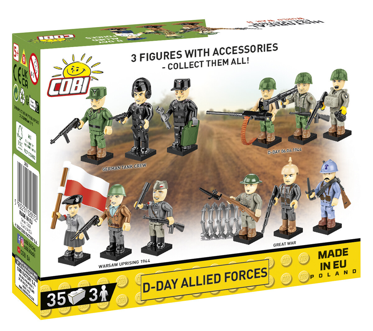 Tato unikátní sada 3 figurek s doplňky nazvaná D-Day Spojenci přináší ztělesnění hrdinství a odvahy spojeneckých sil k 80. výročí vylodění v Normandii. Sestava zahrnuje kanadského vojáka vybaveného puškou Lee-Enfield. Britského výsadkáře, vybaveného lehkým samopalem Sten, symbolizujícího odvážné výsadkové operace, které byly klíčové pro úspěch celé invaze a členku francouzského hnutí odporu, která je vyzbrojena osobní pistolí a ručním granátem. Každá figurka je pečlivě zpracována a je dodávána se základnou, což umožňuje snadné zařazení do jakékoliv sbírky.