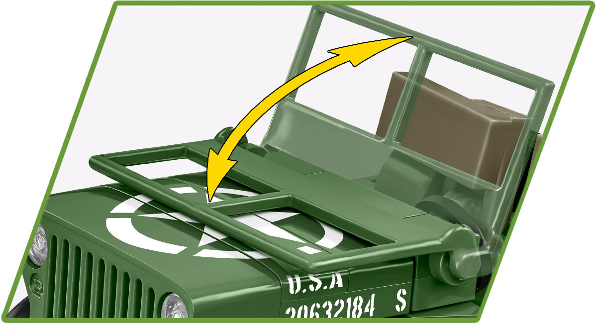 Model Jeepu Willys, navržený v měřítku 1:35 a skládající se ze 132 dílků, je dokonalou reprezentací nejpopulárnějšího terénního vozidla své doby. S jeho těžkým kulometem, otáčejícími se koly s gumovými pneumatikami a doprovodnou figurkou vojáka americké 101. výsadkové divize, poskytuje modelářům detailní pohled na techniku a výzbroj, které byly v této klíčové historické chvíli použity. Vysoká úroveň detailů a kvalitní potisky, včetně nášivek s charakteristickým orlem na ramenou vojáka, činí tento model skvělým přírůstkem k sérii Historical Collection WWII od COBI.