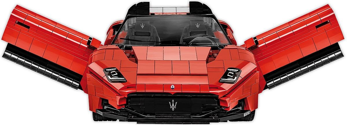 Postavte si model automobilu Maserati MC20 Cielo v měřítku 1:12. Sestavený model se skládá z 2115 dílků a měří 39 cm na délku, 19 cm na šířku a 10,5 cm na výšku. Model má mnoho pohyblivých prvků jako jsou funkční skládací střecha, dveře, které se otevírají nahoru, řiditelná kola, která lze otáčet pomocí funkčního systému řízení. Pomocí četných potisků a pečlivě navržených prvků byly tak důležité detaily a interiér přesně reprodukovány. Stavebnice se vyznačuje krásnou červenou barvou karoserie.