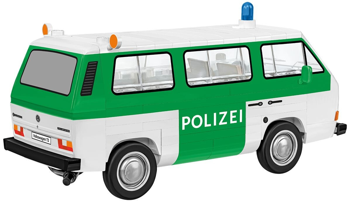 Volkswagen T3 byl třetí generací legendární řady Transporter a postupně se stal jedním z nejuniverzálnějších vozidel své doby. V německých bezpečnostních složkách sloužil u zemské policie, pořádkových jednotek i tehdejší pohraniční stráže, a to v mnoha specializovaných verzích – od hlídkových a transportních vozů až po menší velitelská či dokumentační vozidla. Policisté oceňovali jeho kompaktní rozměry, prostorný interiér a možnost přizpůsobení různým úkolům. Stavebnice COBI přináší autentickou připomínku této éry a umožňuje rozšířit sbírku o model jednoho z nejtypičtějších policejních vozů 80. let.