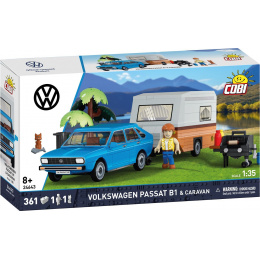 Postavte si Volkswagen Passat B1 s karavanem, ikonickou kombinaci rodinného vozu a obytného přívěsu, která připomíná éru pohodových cestování a kempování. Stavebnice v měřítku 1 : 35 obsahuje 361 kostek a umožňuje sestavit osobní automobil Volkswagen Passat B1, obytný karavan i doplňkovou piknikovou scénu. Rozměry sestaveného modelu jsou 14 cm na délku, 5,5 cm na šířku a 4,5 cm na výšku u automobilu a 14,5 cm na délku, 6 cm na šířku a 7 cm na výšku u karavanu; spojená souprava měří přibližně 28 cm na délku. Součástí balení je figurka turisty, figurka kočky a drobné doplňky pro kempování. Model je vybaven kvalitními tištěnými detaily bez použití samolepek a je plně kompatibilní s ostatními stavebnicemi COBI.