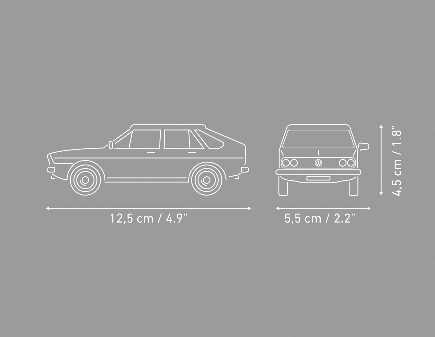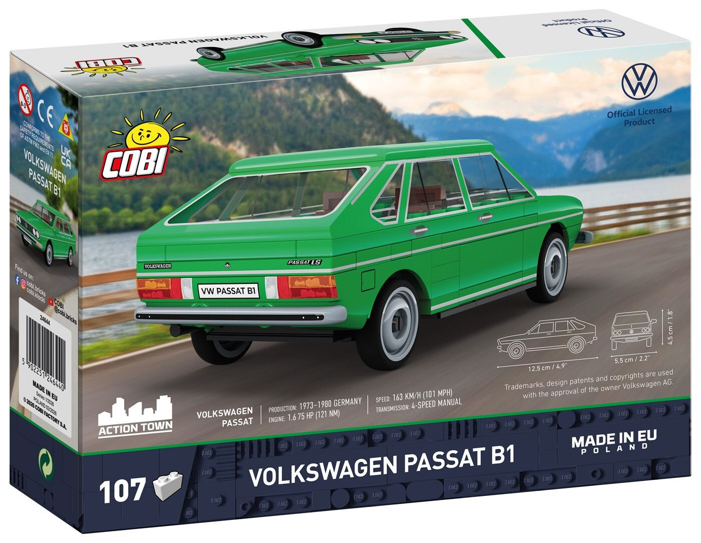 Postavte si Volkswagen Passat B1, klasický sedan sedmdesátých let, který se stal symbolem spolehlivosti a nadčasového designu. Tento model v měřítku 1 : 35 obsahuje 107 kostek a po sestavení dosahuje rozměrů 12,5 cm na délku, 5,5 cm na šířku a 4,5 cm na výšku. Věrně zachycuje charakteristickou tříprostorovou siluetu první generace Passatu, typickou masku chladiče i jednoduché linie karoserie. Model je vybaven otáčivými koly s gumovými pneumatikami a všechny detaily jsou zpracovány pomocí trvalých potisků bez použití samolepek. Díky oficiální licenci Volkswagen představuje autentický sběratelský kousek vhodný jak k vystavení, tak k hraní.
