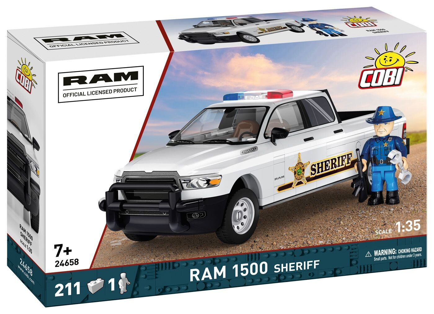 Postavte si RAM 1500 Sheriff, robustní americký pickup ve službách zákona, který patří k ikonám silnic Spojených států. Tento stavebnicový model v měřítku 1 : 35 obsahuje 211 kostek a po sestavení dosahuje rozměrů 17 cm na délku, 6,5 cm na šířku a 6 cm na výšku. Model je vybaven otočnými koly s gumovými pneumatikami, otevírací zadní korbou a detailním provedením karoserie. Součástí balení je také figurka amerického šerifa s výstrojí, přičemž model využívá kombinaci trvalých potisků a kvalitních samolepek, které zajišťují autentický vzhled služebního vozidla.