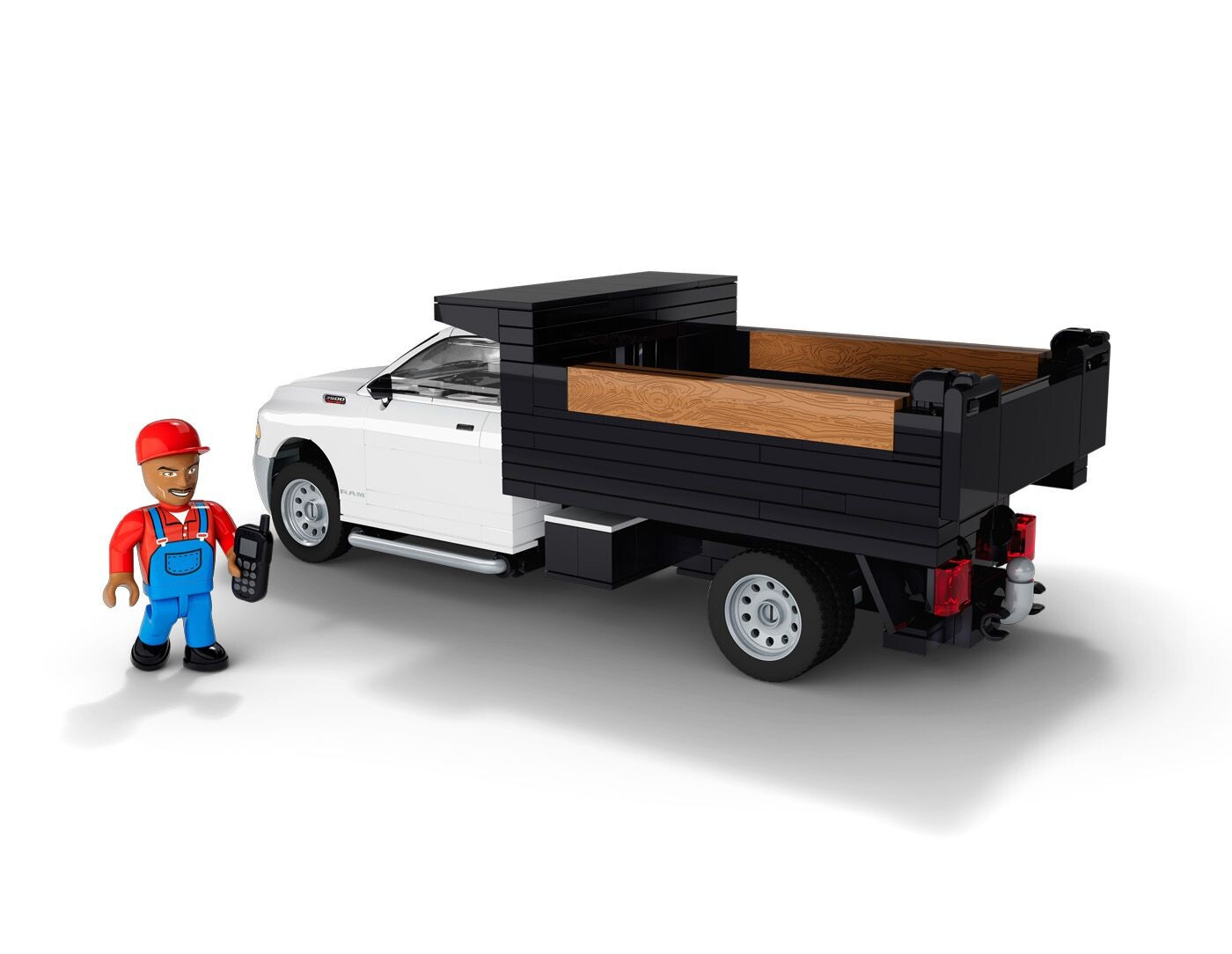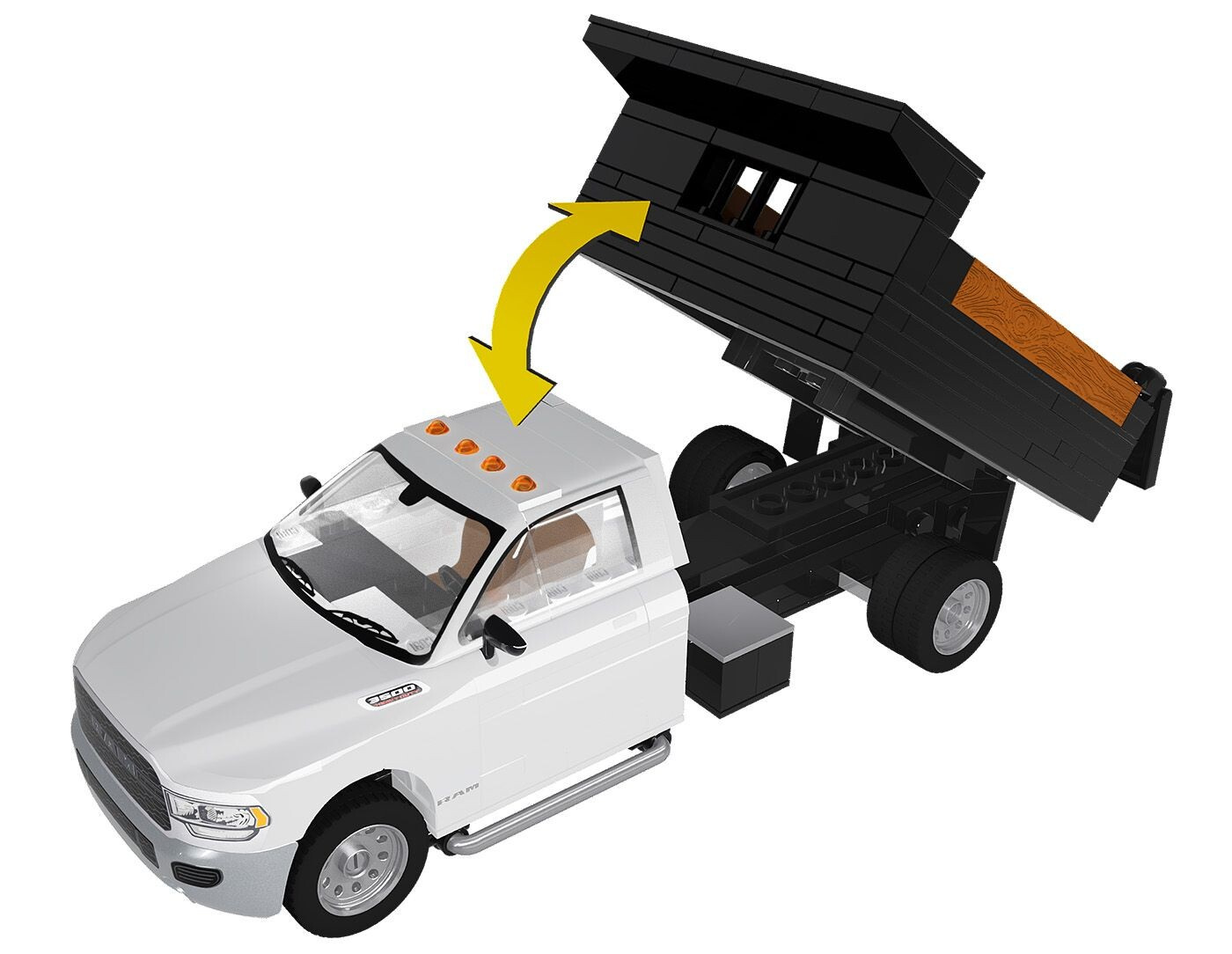 Postavte si RAM 3500 Dump Truck, robustní americký sklápěcí vůz určený pro těžkou práci na stavbách i v náročném terénu. Tento stavebnicový model v měřítku 1 : 35 obsahuje 296 kostek a po sestavení dosahuje rozměrů 18,5 cm na délku, 7,5 cm na šířku a 6,5 cm na výšku. Model je vybaven funkční sklápěcí korbou s otevíratelnou zadní částí, otevíratelnou skříňkou na nářadí a otáčivými koly s gumovými pneumatikami. Součástí balení je také figurka stavebního pracovníka a všechny detaily jsou zpracovány pomocí trvalých potisků bez použití samolepek, což zaručuje dlouhodobě perfektní vzhled modelu.
