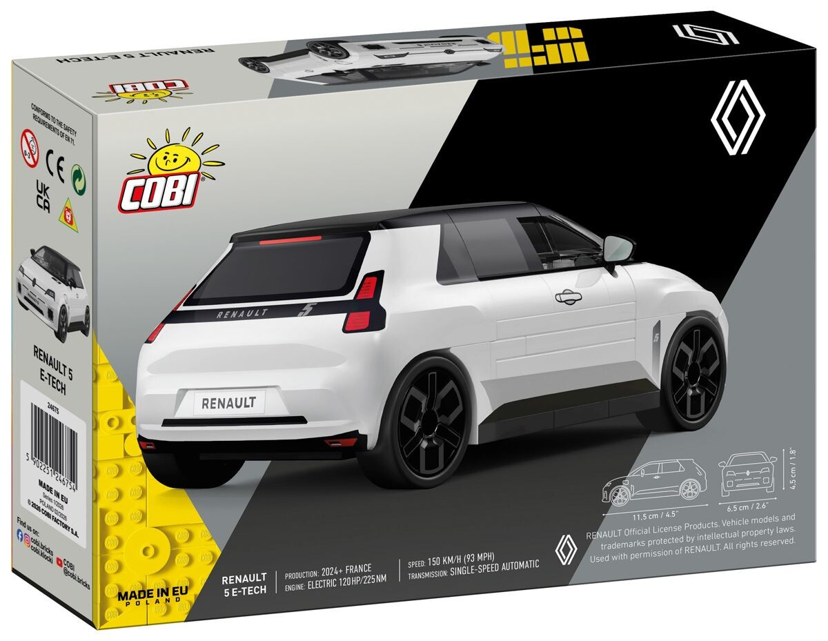 Postavte si Renault 5 E-Tech Electric, moderní elektrickou verzi legendárního evropského hatchbacku, který se v roce 2024 vrátil na silnice v nové podobě. Tento model v měřítku 1 : 35 obsahuje 78 kostek a po sestavení dosahuje rozměrů 11,5 cm na délku, 6,5 cm na šířku a 4,5 cm na výšku. Věrně zachycuje retro-futuristickou siluetu vozu v elegantním bílém provedení, včetně typických světlometů a výrazných blatníků. Model je vybaven otáčivými koly s gumovými pneumatikami a detaily jsou zpracovány pomocí trvalých potisků v kombinaci s kvalitní samolepkou. Díky oficiální licenci Renault představuje autentický sběratelský model vhodný k vystavení i ke hře.