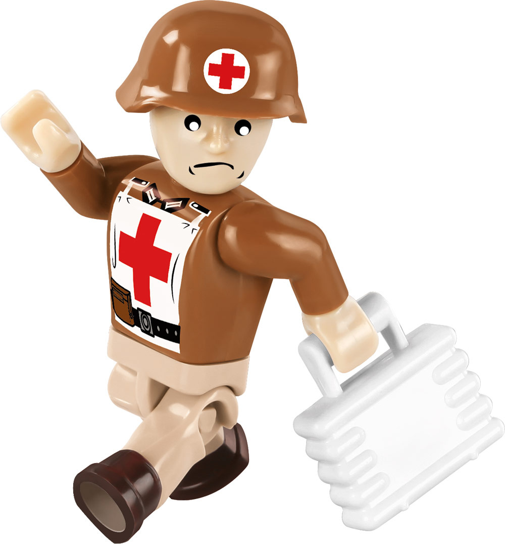 Postavte si německý kolopásový nákladní vůz z druhé světové války s ambulantní nástavbou! Sestavené vozidlo měří 26 cm na délku, 9,5 cm na šířku a 12,5 cm na výšku. Model má otevírací dveře kabiny, plně funkční kola i pásy umožňující jízdu po neklouzavém povrchu a další pohyblivé části. Stavebnice obsahuje 535 kostek, 2 figurky (zdravotníka a zraněného vojáka) a jako bonus sběratelskou kartu.
