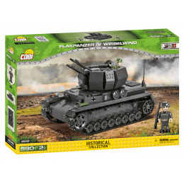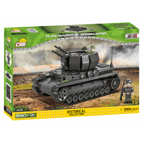 Postavte si model německého protiletadlového děla Flakpanzer IV Wirbelwind. Čtyřhlavňový protiletadlový kanon v otočné věži na podvozku tanku Panzer IV má řadu pohyblivých částí včetně krytu motoru a funkčních pásů. Balení obsahuje 590 kostek a také 2 figurky vyzbrojené ručními zbraněmi. Vystřižením z návodu získáte sběratelskou kartu Cobigames.