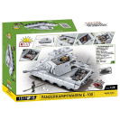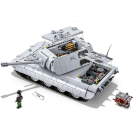 Postavte si prototyp německého tanku Panzekampfwagen E-100 v měřítku 1:28. Sestavený model měří 37 cm na délku, 16,5 cm na šířku a 12,5 cm na výšku. Velké rozměry modelu umožnily navrhnout interiér věže a vozidla. Model nabízí přístup k servisnímu poklopu, pod kterým je odnímatelný motor. Mezi další funkce patří otočná věž, pohyblivý náměr kanonu, přístup k poklopům pro posádku a pracovní koleje. Stavebnice se skládá z 1511 dílků. Součástí sady je i figurka tankisty.
