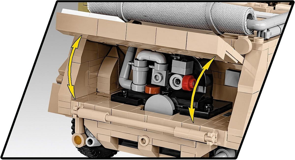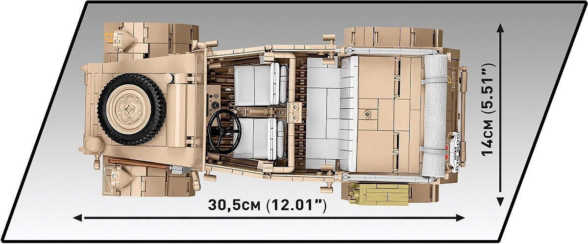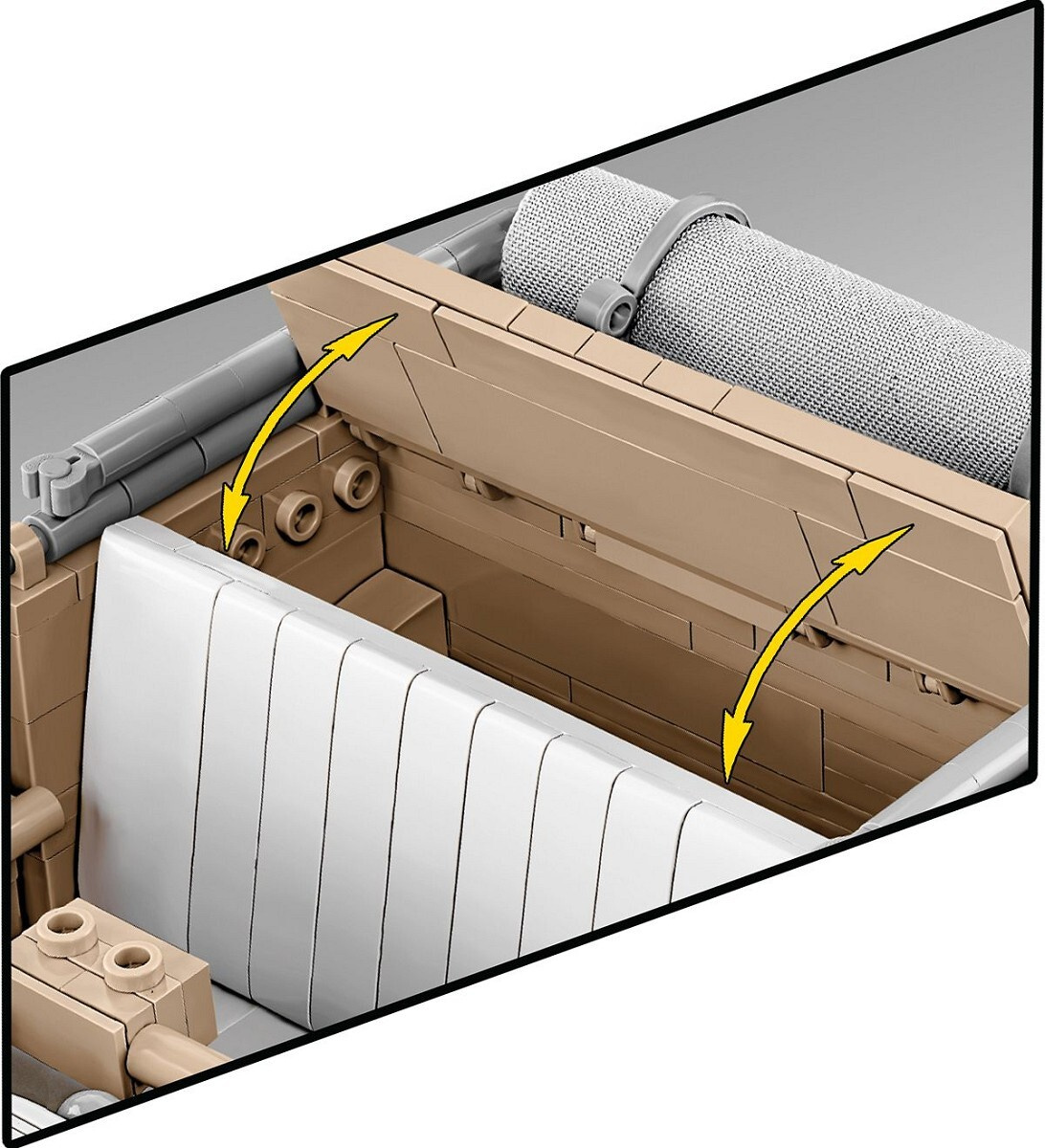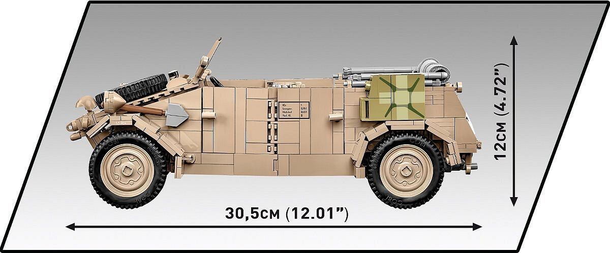 Sestavte si model německého terénního vozu Kübelwagen TYP 82 v měřítku 1:12. Byl navržen na základě muzejního kusu umístěného v Deutsches Panzermuseum Munster (Německo). Model se skládá z 1530 prvků a po sestavení měří 30,5 cm na délku, 14 cm na šířku a 12 cm na výšku. Pozornost upoutá pečlivě zpracovaný exteriér a interiér a zcela nové prvky navržené přímo pro potřeby takto velké sestavy. Interiér vozu je detailně propracovaný ve všech směrech, včetně volantu, sedadel, knoflíků, spínačů a motorového prostoru obsahujícího maketu motoru! Exteriér také zvyšuje laťku, pokud jde o přesnost proporcí a detailů, které může poskytnout pouze sada této velikosti. To zahrnuje sklápěcí okno, otevírací dveře, přístup do kufru a motorového prostoru, prvky výbavy a natáčecí kola, která lze ovládat volantem.