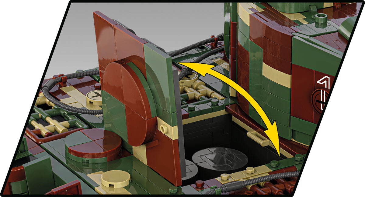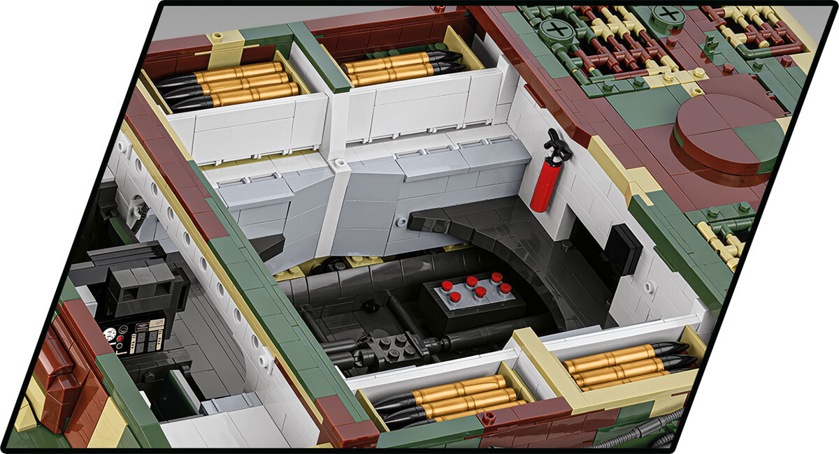 Postavte si model německého tanku PzKpfw VI TIGER č.114 ve velkém měřítku 1:12. Největší a nejdetailnější model z kostek COBI provedený do nejmenšího detailu se skládá z 8000 dílků! Tank jako vůbec první stavebnice COBI je vybaven funkčním odpružením pojezdových kol. Sestavený model má otevírací poklopy pro vstup posádky včetně zadního průlezu věže, otočnou věž s nastavitelným náměrem kanónu, odnímatelnou věž s detailním vybavením prostoru velitele tanku a střelce. Pod zadním krytem je uložený motor Maybach, který lze vystavit samostatně. Pásy tanku jsou plně funkční a s modelem lze snadno pojíždět po neklouzavém povrchu. Sestavený tank měří 71 cm na délku, 30 cm na šířku a 26,5 cm na výšku.