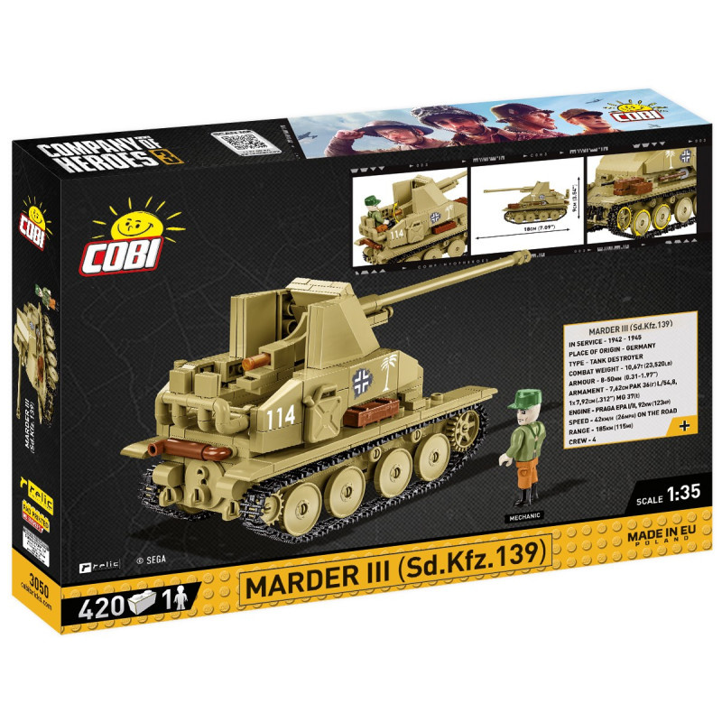 Stavebnice modelu stíhače tanků Marder III Sd.Kfz.139 je v měřítku 1:35. Model má pohyblivé pojezdové pásy, pohyblivou hlaveň děla PaK 36 ráže 75 cm a zabudovaný kulomet MG37. Součástí stavebnice je figurka obsluhy pro vložení do bojového prostoru. Na modelu vozidla jsou doplňky jako lopata, kastlíky, články náhradních pásů, kanystr a v komoře děla založená nábojnice. Stavebnice sestává z 63 dílků. Rozměry sestaveného modelu jsou: (d x š x v) 18 cm x 7 cm x 9 cm. Stavebnice je vyrobena pod oficiální licencí PC hry Company of Heroes 3, společnosti Relic.