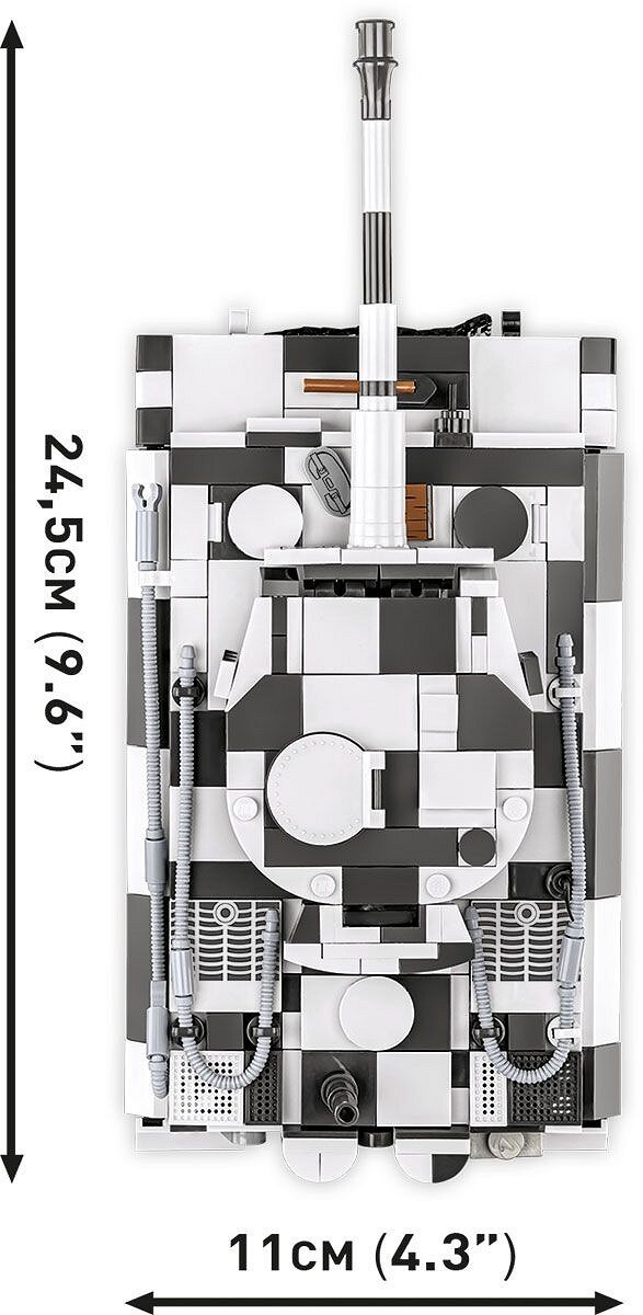 Limitovaná edice stavebnice COBI Panzerkampfwagen VI Tiger I přináší jeden z nejikoničtějších německých tanků druhé světové války v autentické zimní kamufláži východní fronty. Model v měřítku 1:35 nabízí mimořádně detailní zpracování – otočnou věž s nastavitelným náměrem kanónu, otevírací poklopy pro osádku, odnímatelný motor Maybach s možností samostatného vystavení i plně funkční pásy umožňující plynulý pohyb po podložce. Rozměry sestaveného modelu jsou 24,5 cm na délku, 11 cm na šířku a 10,5 cm na výšku. Součástí balení je také certifikát s unikátním pořadovým číslem, který potvrzuje originalitu této sběratelské edice.