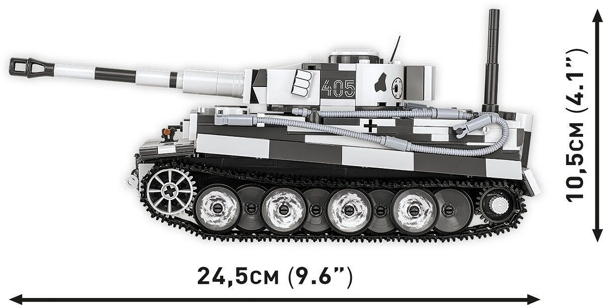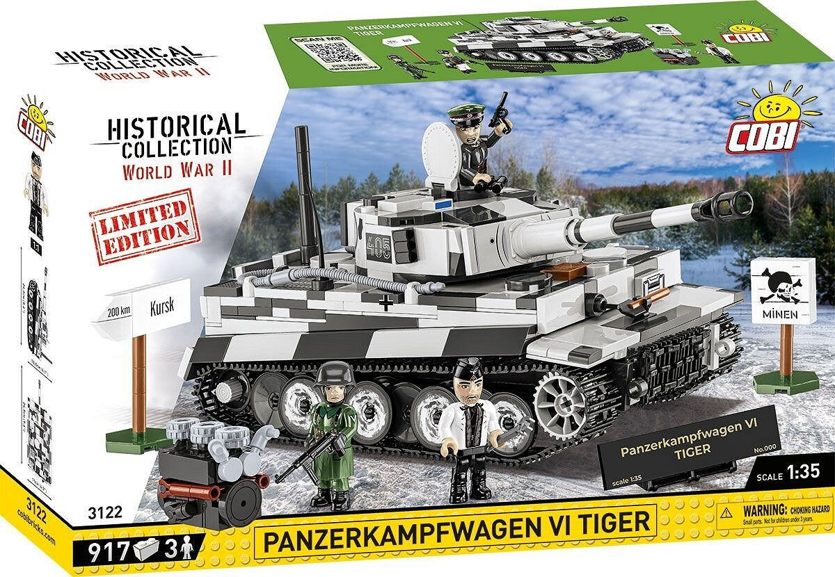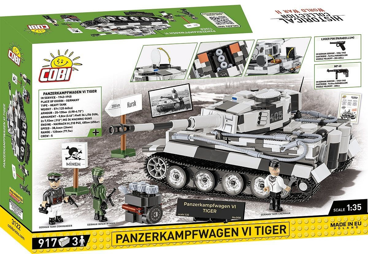 Tank s číslem 405 patřil k 503. těžkému tankovému praporu, jenž se účastnil bojů na východní frontě a později také v Itálii. Tiger I vznikl jako reakce na sovětský tank T-34, jehož ukořistění v roce 1941 zásadně změnilo německý tankový vývoj. Výsledkem byl stroj s mimořádně silným pancéřováním a legendárním kanónem 88 mm, který na bojišti dlouho neměl konkurenci. Model připomíná nejen technickou převahu Tigeru, ale i jeho slabiny – vysokou spotřebu paliva, složitou údržbu a omezenou pohyblivost v těžkém terénu. Součástí stavebnice jsou figurky velitele Hanse-Heinze Hutha, řidiče, pěšáka a směrová tabule „Kursk“, díky nimž lze vytvořit autentickou scénu z nejznámějších bitev východní fronty.