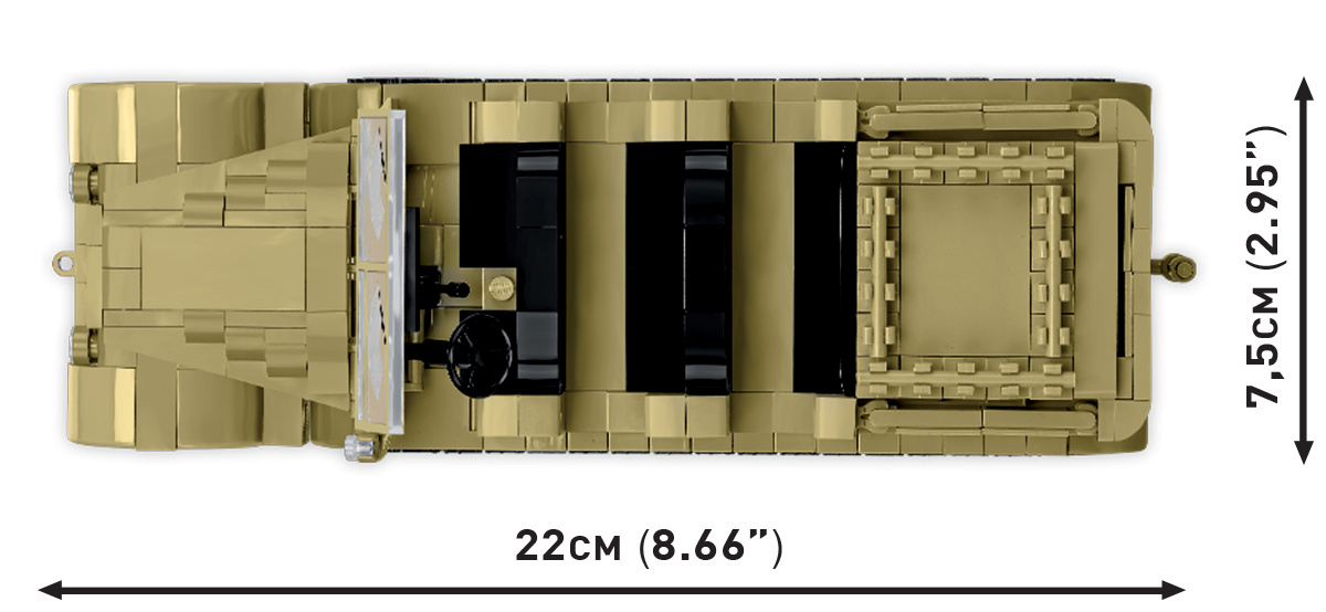 Doplňte svou sbírku o Sd.Kfz. 8 & 8,8 cm Flak 36 (DAK) a přeneste se na rozpálená bojiště severní Afriky, kde rozhodovala mobilita, palebná síla a spolehlivost techniky. Tento rozsáhlý stavebnicový set v měřítku 1 : 35 obsahuje 975 kostek a umožňuje postavit hned dva ikonické modely – legendární protiletadlové dělo 8,8 cm Flak 36 na přívěsu Sonderanhänger 201 a mohutný polopásový dělostřelecký tahač Sd.Kfz. 8, uzpůsobený pro náročné podmínky pouště. Součástí balení jsou tři figurky příslušníků Luftwaffe v typických pouštních uniformách Afrika Korps, bedna na munici, náboje a sběratelská kostičková tabulka s názvem modelu a měřítkem. Rozměry sestaveného modelu jsou 43 cm na délku, 7,5 cm na šířku a 8,5 cm na výšku.