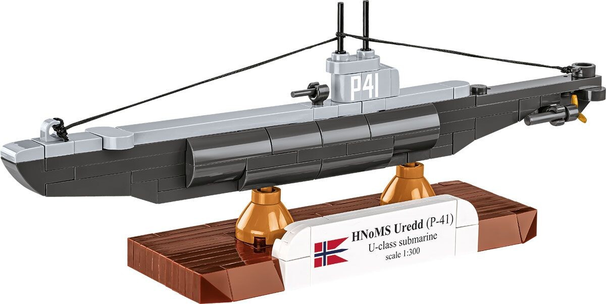Postavte si HNoMS Uredd (P-41), legendární norskou ponorku z období druhé světové války, která se stala symbolem odvahy a oběti své posádky. Tento model v měřítku 1 : 300 obsahuje 142 kostek a po sestavení dosahuje rozměrů 19,5 cm na délku, 6,5 cm na šířku a 4 cm na výšku. Věrně zachycuje charakteristickou siluetu ponorky třídy U, včetně detailů trupu, věže a kormidel. Model je vybaven pohyblivými řídicími prvky a lodními šrouby a nechybí ani sběratelský podstavec s tabulkou. Všechny detaily jsou provedeny pomocí trvalých potisků bez použití samolepek.