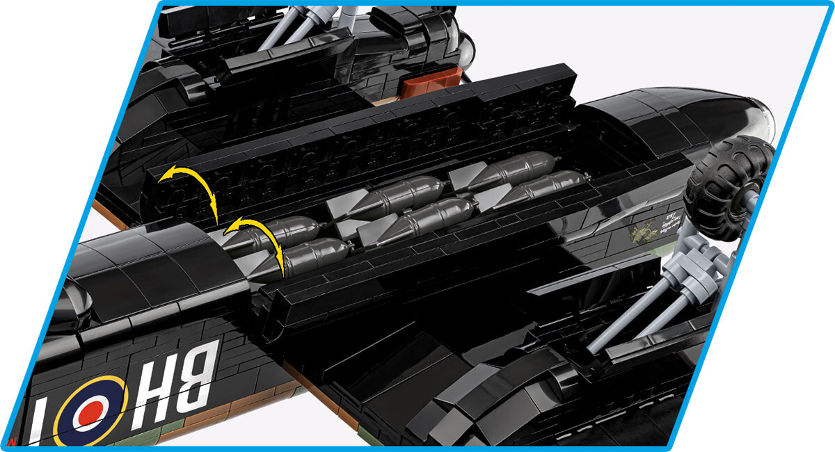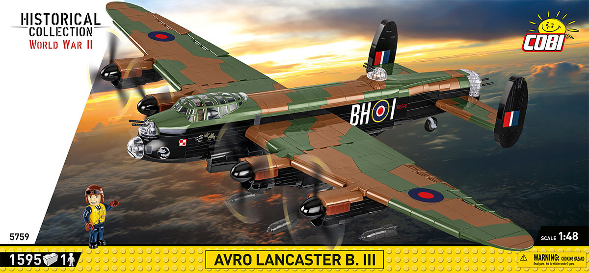 Postavte si model těžkého britského bombardéru Avro Lancaster MK. I/B III v měřítku 1:48. Stavebnice se skládá z 1595 dílků a sestavený model má rozměry 45,5 cm na délku, 13 cm na výšku a rozpětí křídel 64,5 cm. Stavebnice má řadu pohyblivých prvků, jakou jsou otočné vrtule, sklopný podvozek, otevíratelná pumovnice nebo křidélka. Kabina je odnímací a lze do ní umístit figurku pilota. Součástí stavebnice je i jedna figurka.