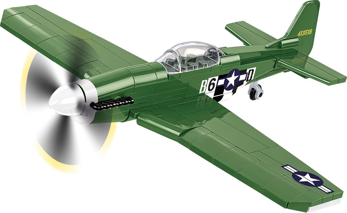 Postavte si model amerického stíhacího letounu Mustang P-51D v měřítku 1:48. Sestavený model se skládá ze 152 dílků a měří 20 cm na délku, 23 cm na šířku a 9 cm na výšku. Model disponuje pohyblivými prvky jako je odnímatelný podvozek nebo otočná vrtule. Licencovaný Mustang z kostek COBI je skvělý kompaktní model, který odstartuje nejednu sbírku mezi nadšenci do letectví a vojenské techniky!