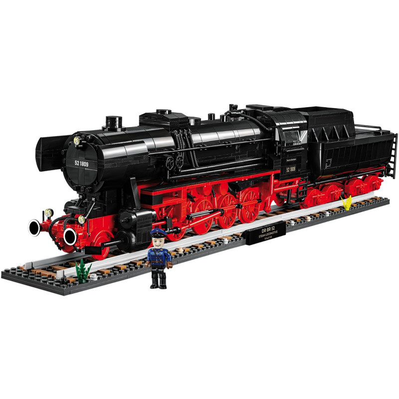 Postavte si model německé parní lokomotivy DR BR 52/Ty2 s tendrem z období druhé světové války v měřítku 1:35. Kostičky stavebnice umožnují postavit verzi německou nebo polskou. Stavebnice má 2623 dílků. Model má odnímatelnou střechu a otevírací dveře kabiny s pohledem na ovládání a měřicí přístroje včetně znázornění hořícího ohniště a figurky německého a polského železničáře. Vnitřní soustava ozubených kol zajišťuje realistický pohyb kol a ojnic a konstrukce podvozku umožnuje snadný průjezd od rádiusu R88, podvozky tendru jsou otočné. Součástí stavebnice je pět rovných kolejí v celkové délce 65 cm a kompatibilních s kolejemi dalších výrobců. Rozměry sestavené lokomotivy jsou: (d x š x v): 69 cm x 9,5 cm x 14 cm.