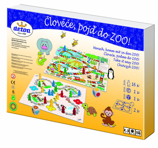 Nová zábavná hra pro děti, na způsob oblíbeného Člověče, nezlob se. Dvě hry v jedné! Figurkou se pohybuje pomocí hozené barvy nebo obrázku zvířátka, je tedy vhodná i pro menší hráče. Velice pěkný design. Hra je vhodná pro děti od 3 let. DETOA Albrechtice s.r.o., 468 43 Jiřetín pod Bukovou 6, Česká Republika, sales@detoa.cz