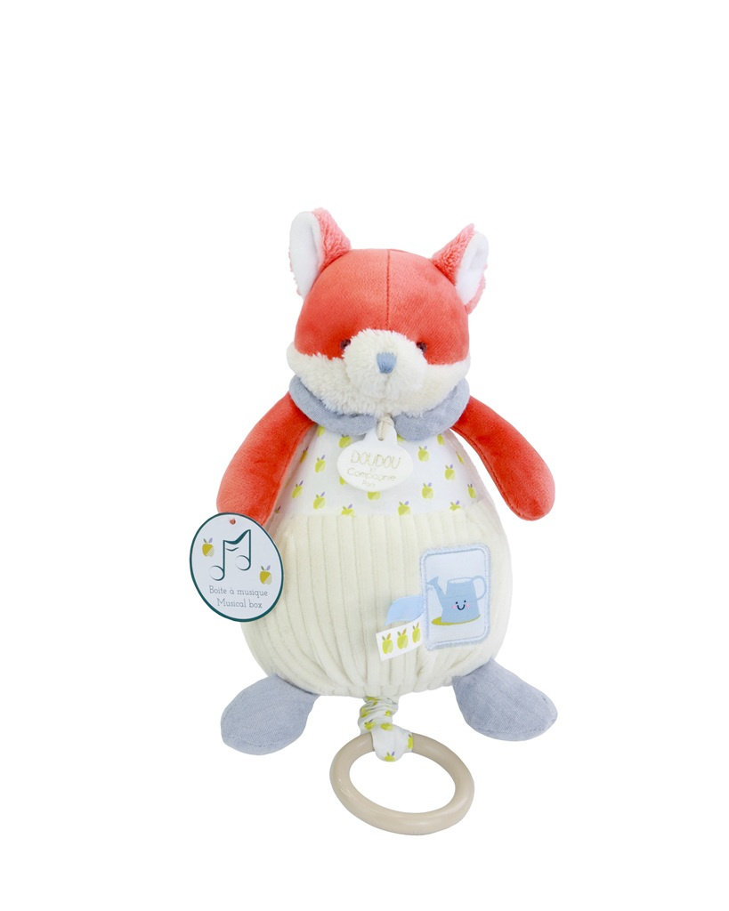 Plyšová liška Romarin hrající melodii z kolekce „Moje zahrada“ je vyrobena z hebkých kvalitních materiálů. Má roztomilý obličej a kombinace použitých barev a různých textur stimuluje smysly a rozvíjí jemnou motoriku Vašeho miminka. Po zatažení za kroužek se rozezní jemná melodie La Vie en Rose, která děťátko uklidní a ukolébá ke spánku. Hračka je zabalena v pěkné dárkové krabičce pro uložení vzpomínek (fotografie a další připomínky narození a rozvoje miminka) s veršovaným textem v angličtině na spodní straně. Zavěste hračku na postýlku nebo kočárek, aby Vaše dítě mělo svého oblíbeného mazlíčka vždy u sebe. Ideální dárek pro jakoukoliv příležitost.