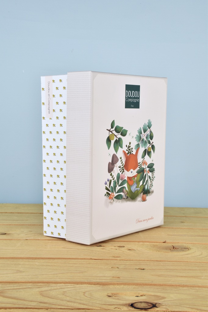Liška Romarin o velikosti 19 cm z kolekce „Moje zahrada“ je roztomilá hračka s praktickým integrovaným úchytem dudlíku, který zajistí, že dudlík bude vždy při ruce. Má roztomilý obličej a na sobě světlý manšestrový obleček s veselou nášivkou. Různé textury vybízejí ke zkoumání a mačkání a dítě zabaví i uklidní. Podporují také smyslový vývoj a rozvoj jemné motoriky. Hračka je zabalena v pěkné dárkové krabičce pro uložení vzpomínek (fotografie a další připomínky narození a rozvoje miminka) s veršovaným textem v angličtině na spodní straně. Ideální dárek pro jakoukoliv příležitost.