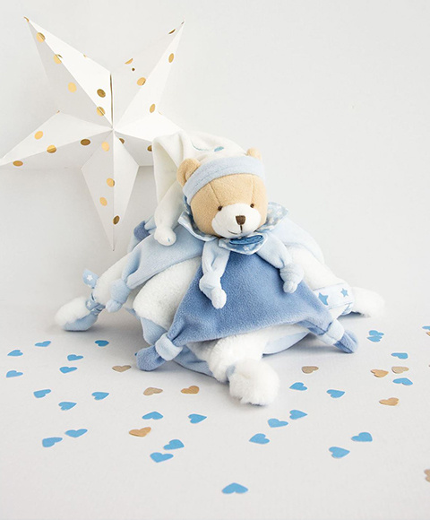Plyšový muchláček doprovází miminko od narození, aby mu přinesl hebkost, pohodlí a objetí. Ultra jemná a uklidňující je strana se svěžím bavlněným potiskem, rozvíjí smysly a zvědavost. Velmi pěkný dárek k Vánocům nebo k oslavě narození miminka. Prezentováno v pěkně ladící krabičce.