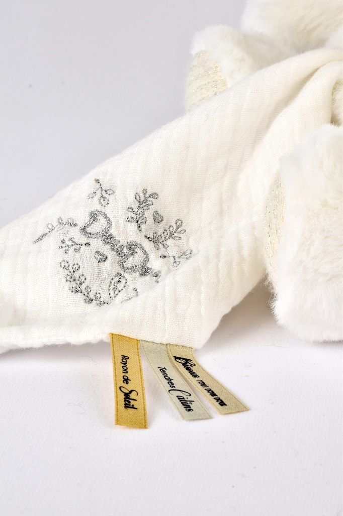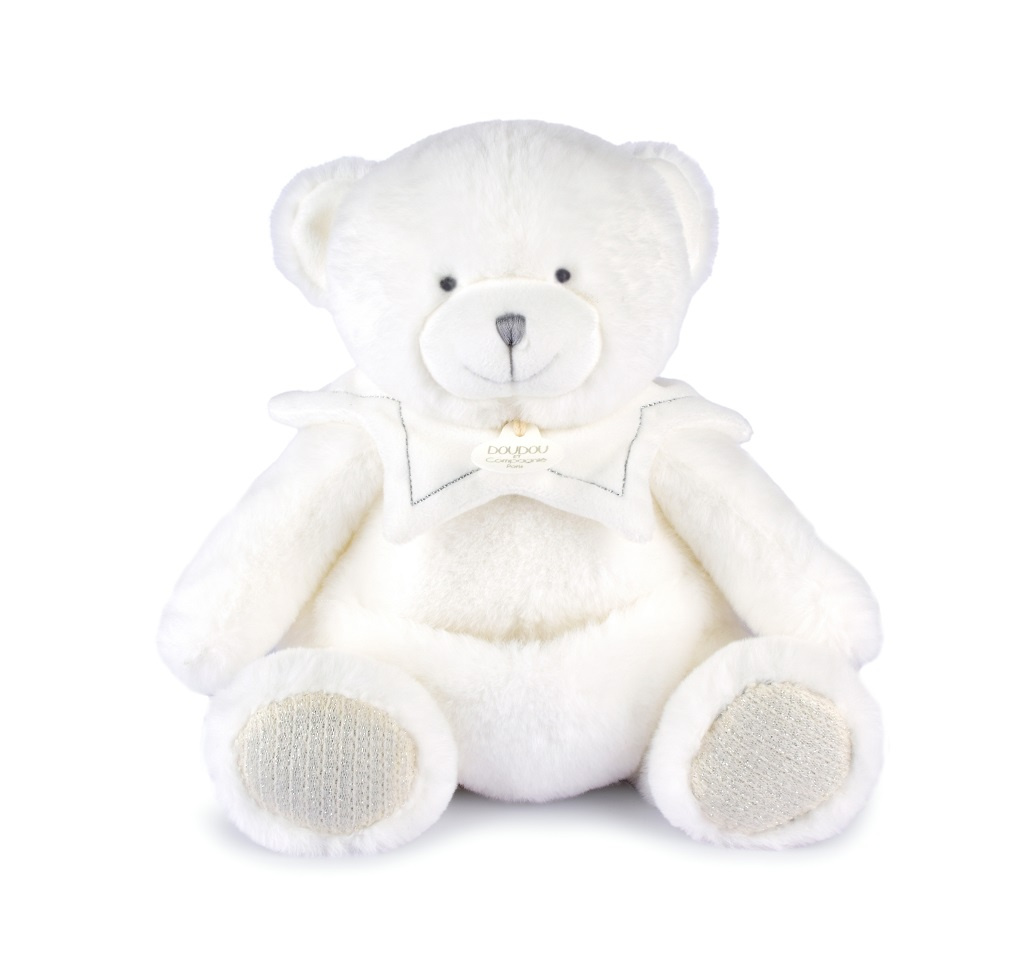 Plyšový medvídek je ideálním dárkem pro děti již od narození. Součástí medvídka je měkoučká dečka, která je skvělá k mazlení a může pomoci miminku snadněji usnout. Dečku lze jednoduše schovat do bříška medvídka, což je praktické při cestování nebo ukládání. Je ozdobená jemnou výšivkou značky Doudou a saténovými stuhami s láskyplnými vzkazy ve francouzštině, které dodávají každému mazlení ještě něžnější pocit. Medvídek má stylové růžové srdíčko na tlapce, roztomilý béžový límeček pod krkem a hebké béžové tlapky, které mu dodávají něžný a přátelský vzhled.