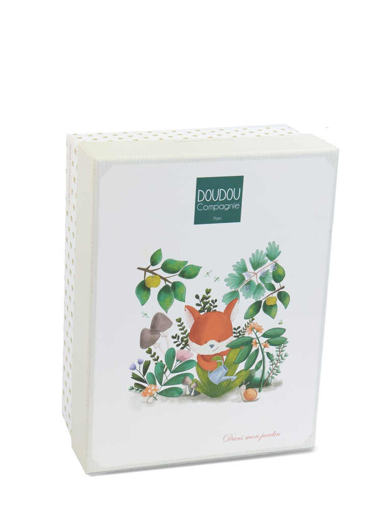 Muchláček liška Romarin o velikosti 27 cm z kolekce „Moje zahrada“ je vyroben z kvalitního hebkého materiálu. Má roztomilý obličej a kombinace použitých barev a různých textur stimuluje smysly a rozvíjí jemnou motoriku Vašeho miminka. Vybízí ke zkoumání a mazlení a dítě zabaví i uklidní. Podporuje také smyslový vývoj a rozvoj jemné motoriky. Je zabalen v pěkné dárkové krabičce pro uložení vzpomínek (fotografie a další připomínky narození a rozvoje miminka) s veršovaným textem v angličtině na spodní straně. Ideální dárek pro jakoukoliv příležitost.
