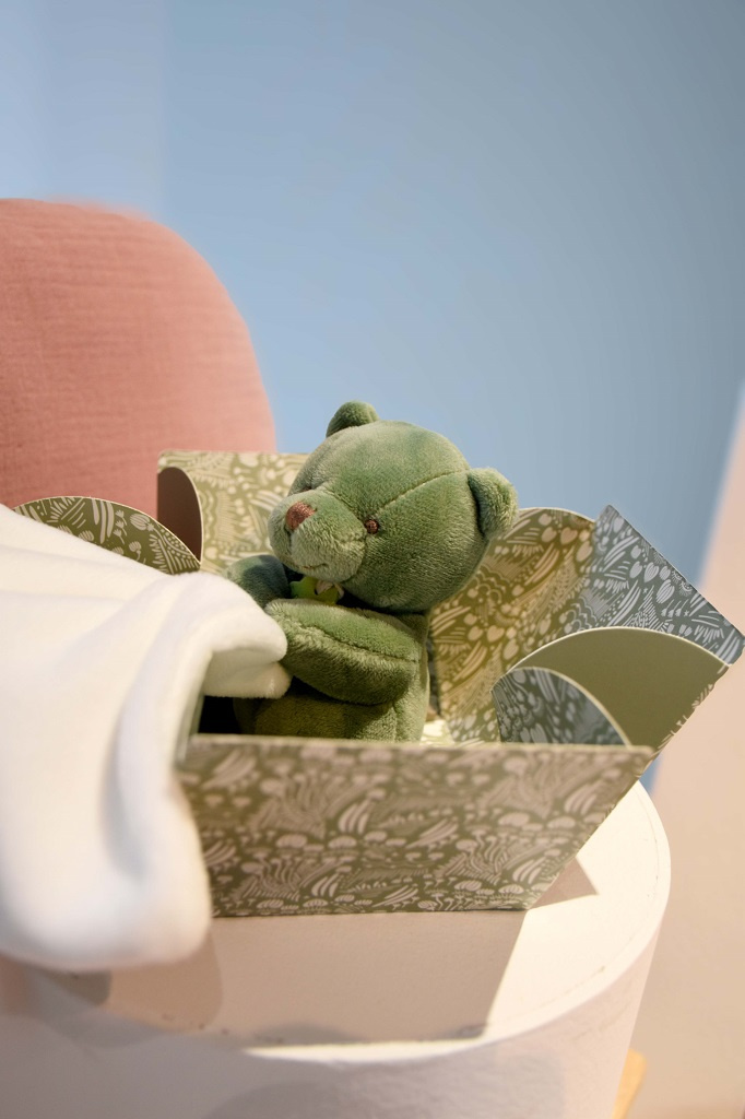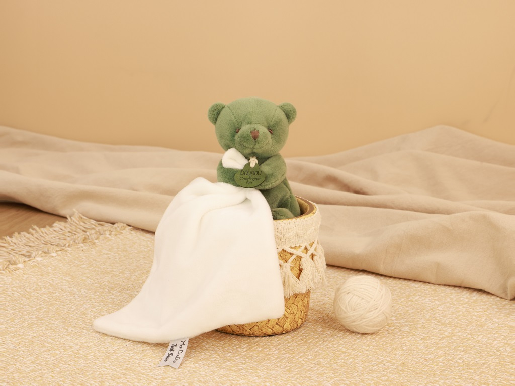 Malý roztomilý medvídek s dečkou je vždy připraven vnést do života dítěte něžnost. Vyberte svému dítku vzácného společníka, který ho bude doprovázet při jeho dobrodružstvích ve dne i v noci. Tento malý plyšový medvídek doprovází miminko od narození, aby mu přinesl hebkost, pohodlí a objetí. Pro miminko bude mít především uklidňující efekt. Rozvíjí smysly a zvědavost. K dispozici je v 8 jemných barvách. Hračka je extrémně měkká a je dodávána v pěkně ladící krabičce. Spodní část krabičky je možno rozložit do tvaru květu, můžete tak medvídkovi udělat postýlku a přikrýt ho jeho dečkou. Nebo dejte do květu medvídka na dečku sednout a plyšáček se tak stane velmi pěknou dekorací každého prostoru.