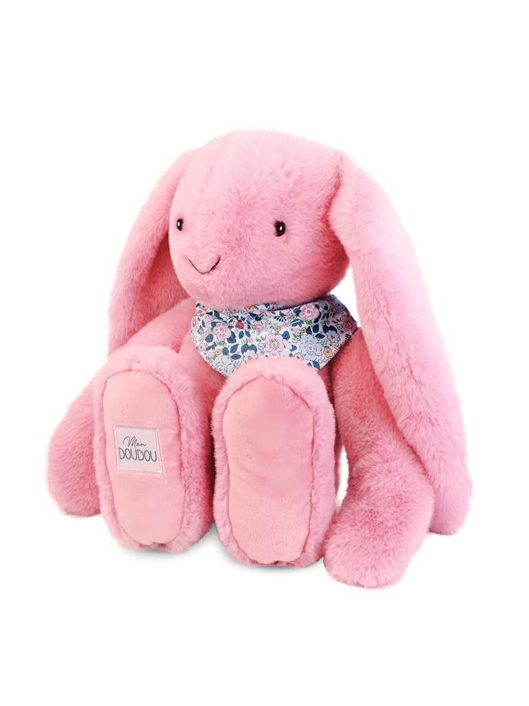 Heboučký králík o velikosti 50 cm s květovaným šátkem má přátelský obličej, dlouhá ouška a doprovází miminko od narození po celé dětství, aby mu poskytl objetí, pocit pohodlí a bezpečí. Díky barevnému provedení v jemných barvách a prémiovému extra hebkému materiálu vybízí k tulení a muchlání a dítě zabaví i uklidní. Přispívá k rozvoji smyslového vnímání, jemné motoriky a je roztomilým pomocníkem pro klidné usínání. Ideální dárek pro jakoukoliv příležitost.