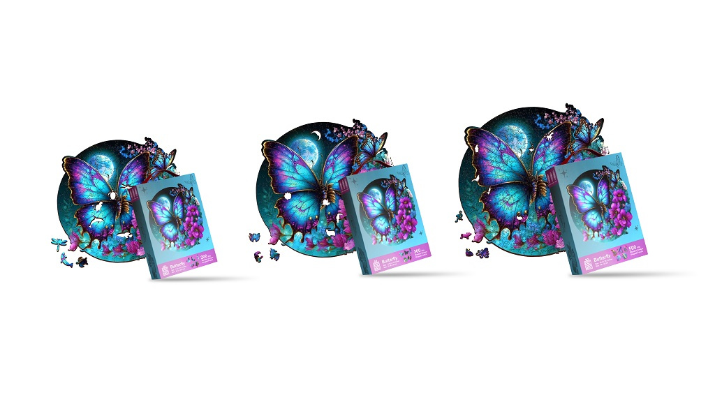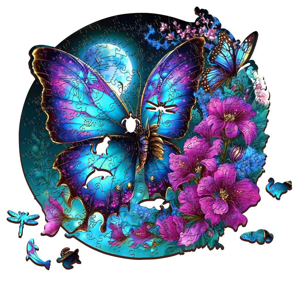 Puzzle s obrázkem motýla je unikátní dřevěné skládací puzzle, které spojuje kvalitní řemeslné zpracování s ekologicky odpovědným přístupem. Je vyrobeno z 5 mm FSC® certifikovaného dřeva, které zaručuje, že při výrobě byly dodrženy nejvyšší standardy ve správě lesů, což přispívá k udržitelnosti a ochraně biodiverzity. Každý z jedinečných 200 dílků skládačky je precizně vyřezán laserem, což zajišťuje dokonalou přesnost a hladkost hran, čímž usnadňuje skládání i manipulaci s dílky. Barevný a detailní obraz je reprodukován pomocí moderní technologie UV digitálního tisku, což přináší realistické a živé barvy do každého kousku skládačky. Toto puzzle je výzva pro všechny milovníky skládaček, kterým poskytne hodiny zábavy. Je také dobrou příležitostí, jak dát dohromady celou rodinu a přátele. Složený obrázek může sloužit jako krásný a dekorativní doplněk pro Váš prostor.