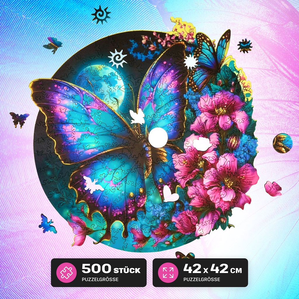 Puzzle s obrázkem motýla je unikátní dřevěné skládací puzzle, které spojuje kvalitní řemeslné zpracování s ekologicky odpovědným přístupem. Je vyrobeno z 5 mm FSC® certifikovaného dřeva, které zaručuje, že při výrobě byly dodrženy nejvyšší standardy ve správě lesů, což přispívá k udržitelnosti a ochraně biodiverzity. Každý z jedinečných 500 dílků skládačky je precizně vyřezán laserem, což zajišťuje dokonalou přesnost a hladkost hran, čímž usnadňuje skládání i manipulaci s dílky. Barevný a detailní obraz je reprodukován pomocí moderní technologie UV digitálního tisku, což přináší realistické a živé barvy do každého kousku skládačky. Toto puzzle je výzva pro všechny milovníky skládaček, kterým poskytne hodiny zábavy. Je také dobrou příležitostí, jak dát dohromady celou rodinu a přátele. Složený obrázek může sloužit jako krásný a dekorativní doplněk pro Váš prostor.