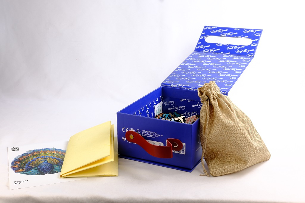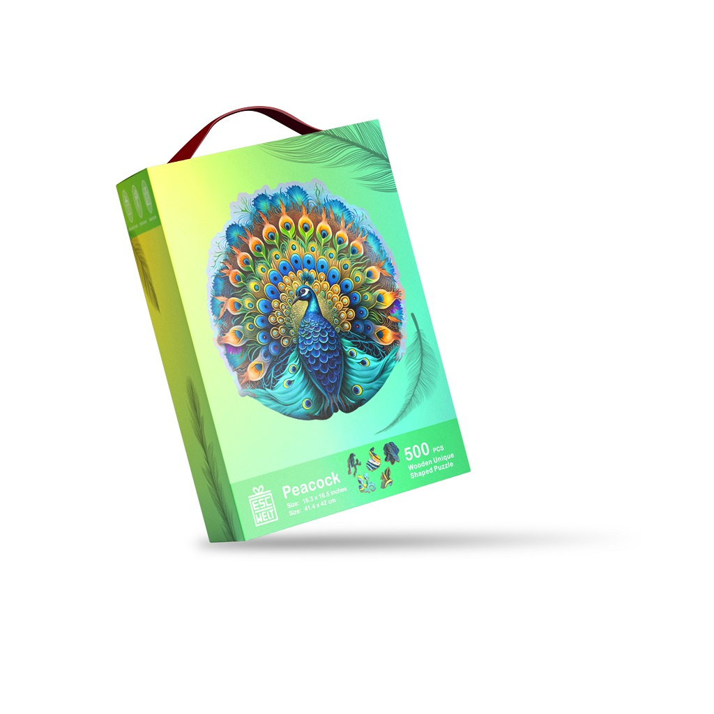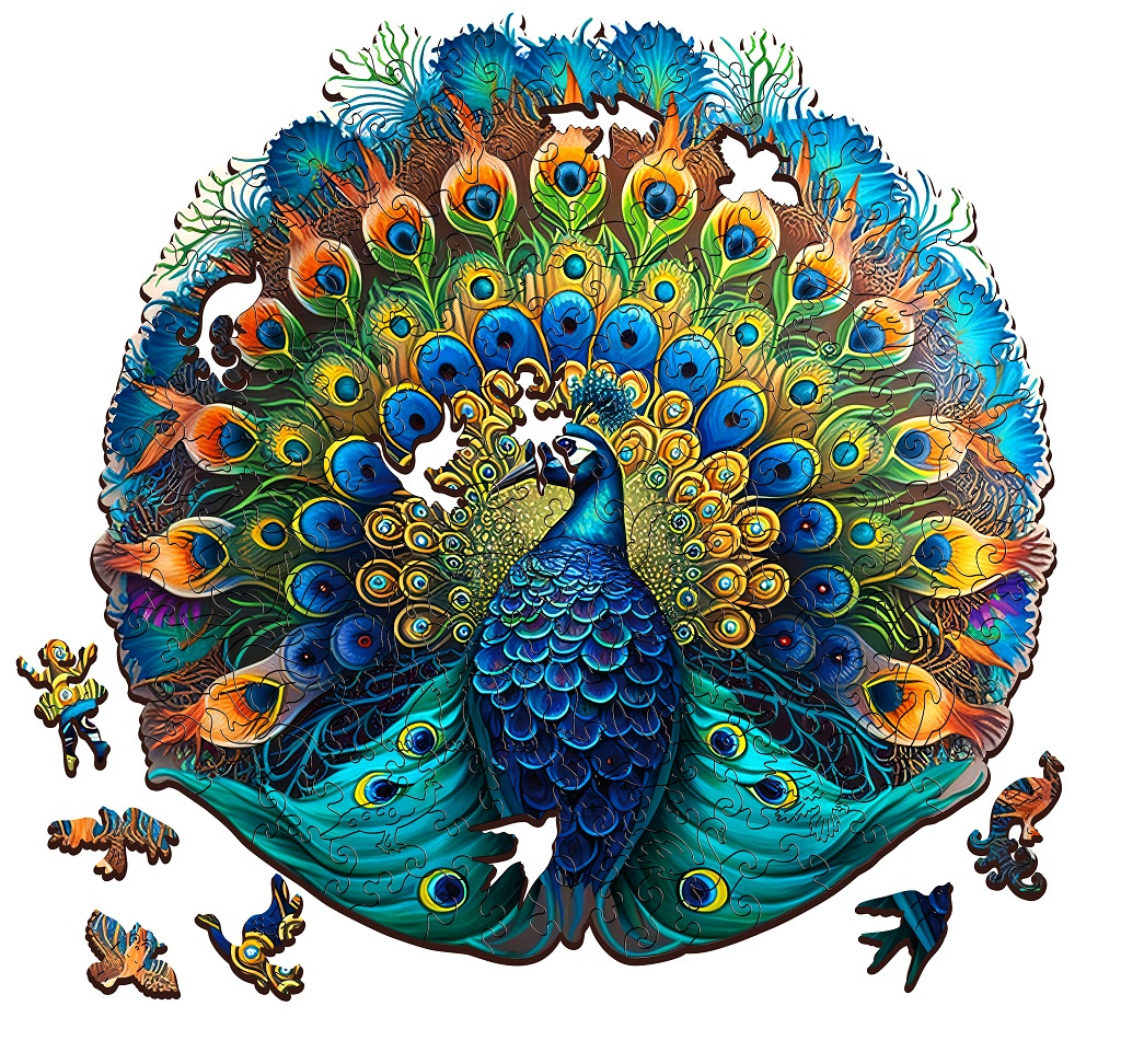 Puzzle s obrázkem páva je unikátní dřevěné skládací puzzle, které spojuje kvalitní řemeslné zpracování s ekologicky odpovědným přístupem. Je vyrobeno z 5 mm FSC® certifikovaného dřeva, které zaručuje, že při výrobě byly dodrženy nejvyšší standardy ve správě lesů, což přispívá k udržitelnosti a ochraně biodiverzity. Každý z jedinečných 500 dílků skládačky je precizně vyřezán laserem, což zajišťuje dokonalou přesnost a hladkost hran, čímž usnadňuje skládání i manipulaci s dílky. Barevný a detailní obraz je reprodukován pomocí moderní technologie UV digitálního tisku, což přináší realistické a živé barvy do každého kousku skládačky. Toto puzzle je výzva pro všechny milovníky skládaček, kterým poskytne hodiny zábavy. Je také dobrou příležitostí, jak dát dohromady celou rodinu a přátele. Složený obrázek může sloužit jako krásný a dekorativní doplněk pro Váš prostor.
