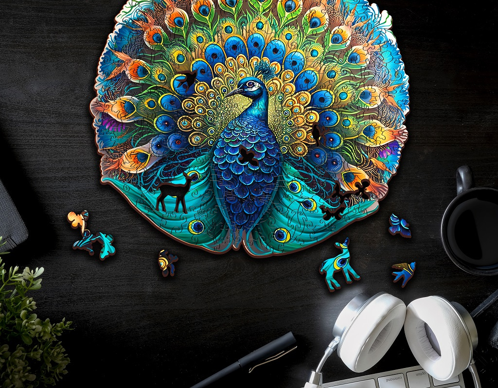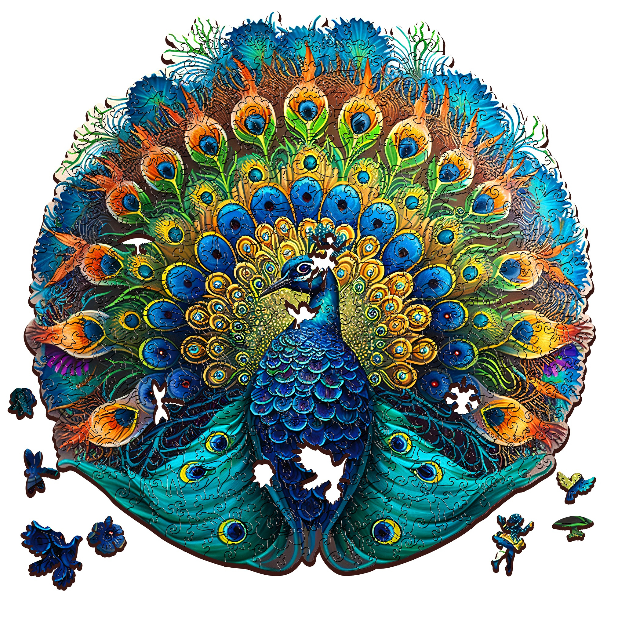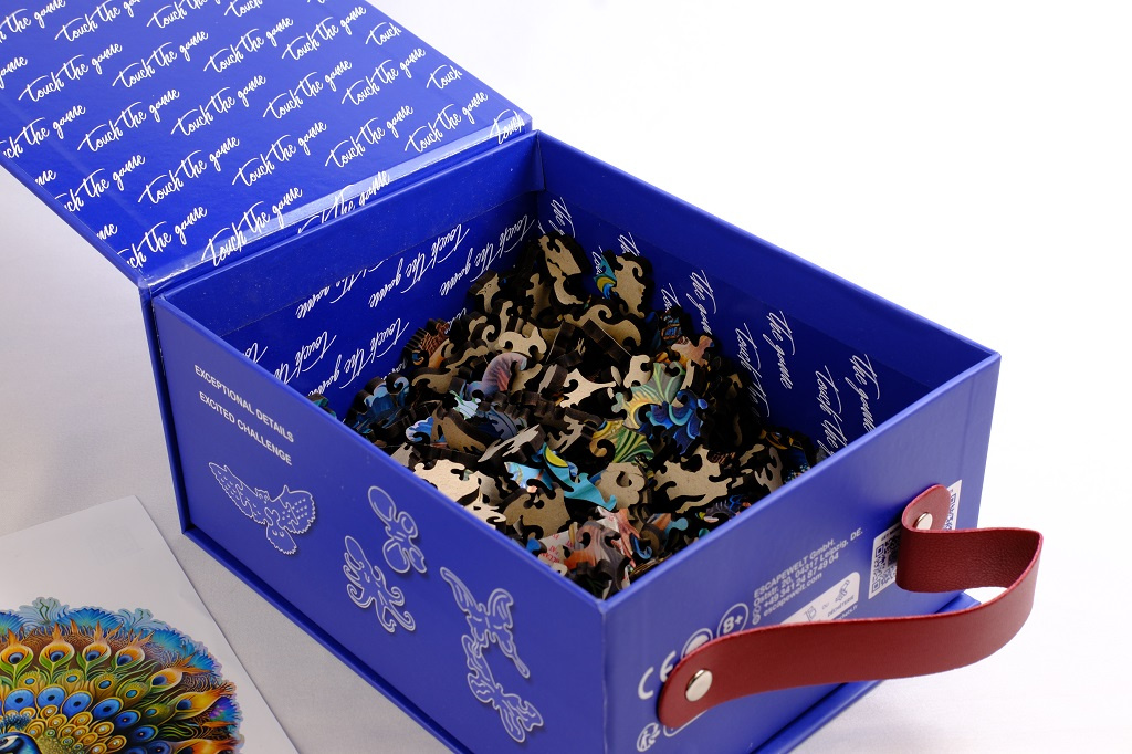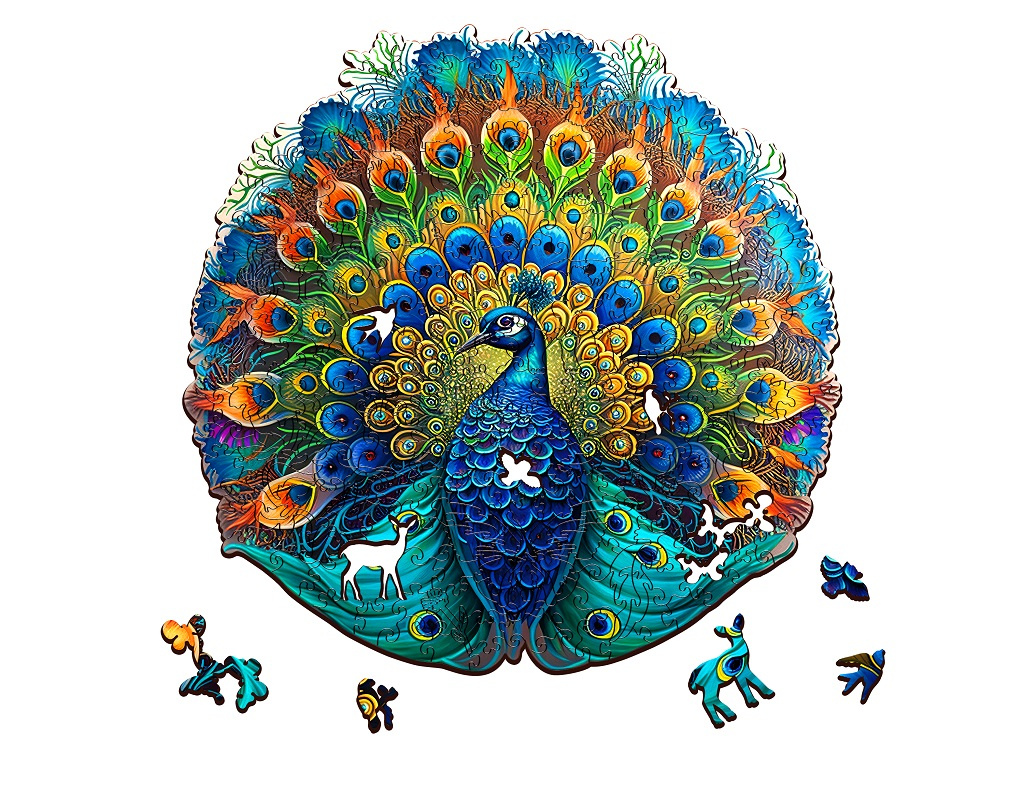 Puzzle s obrázkem páva je unikátní dřevěné skládací puzzle, které spojuje kvalitní řemeslné zpracování s ekologicky odpovědným přístupem. Je vyrobeno z 5 mm FSC® certifikovaného dřeva, které zaručuje, že při výrobě byly dodrženy nejvyšší standardy ve správě lesů, což přispívá k udržitelnosti a ochraně biodiverzity. Každý z jedinečných 500 dílků skládačky je precizně vyřezán laserem, což zajišťuje dokonalou přesnost a hladkost hran, čímž usnadňuje skládání i manipulaci s dílky. Barevný a detailní obraz je reprodukován pomocí moderní technologie UV digitálního tisku, což přináší realistické a živé barvy do každého kousku skládačky. Toto puzzle je výzva pro všechny milovníky skládaček, kterým poskytne hodiny zábavy. Je také dobrou příležitostí, jak dát dohromady celou rodinu a přátele. Složený obrázek může sloužit jako krásný a dekorativní doplněk pro Váš prostor.