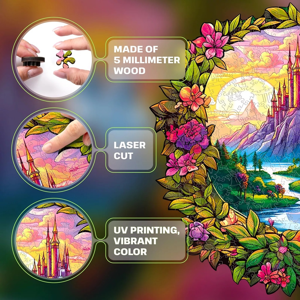 Puzzle s obrázkem kouzelného lesa je unikátní dřevěné skládací puzzle, které spojuje kvalitní řemeslné zpracování s ekologicky odpovědným přístupem. Je vyrobeno z 5 mm FSC® certifikovaného dřeva, které zaručuje, že při výrobě byly dodrženy nejvyšší standardy ve správě lesů, což přispívá k udržitelnosti a ochraně biodiverzity. Každý z jedinečných 200 dílků skládačky je precizně vyřezán laserem, což zajišťuje dokonalou přesnost a hladkost hran, čímž usnadňuje skládání i manipulaci s dílky. Barevný a detailní obraz je reprodukován pomocí moderní technologie UV digitálního tisku, což přináší realistické a živé barvy do každého kousku skládačky. Toto puzzle je výzva pro všechny milovníky skládaček, kterým poskytne hodiny zábavy. Je také dobrou příležitostí, jak dát dohromady celou rodinu a přátele. Složený obrázek může sloužit jako krásný a dekorativní doplněk pro Váš prostor.
