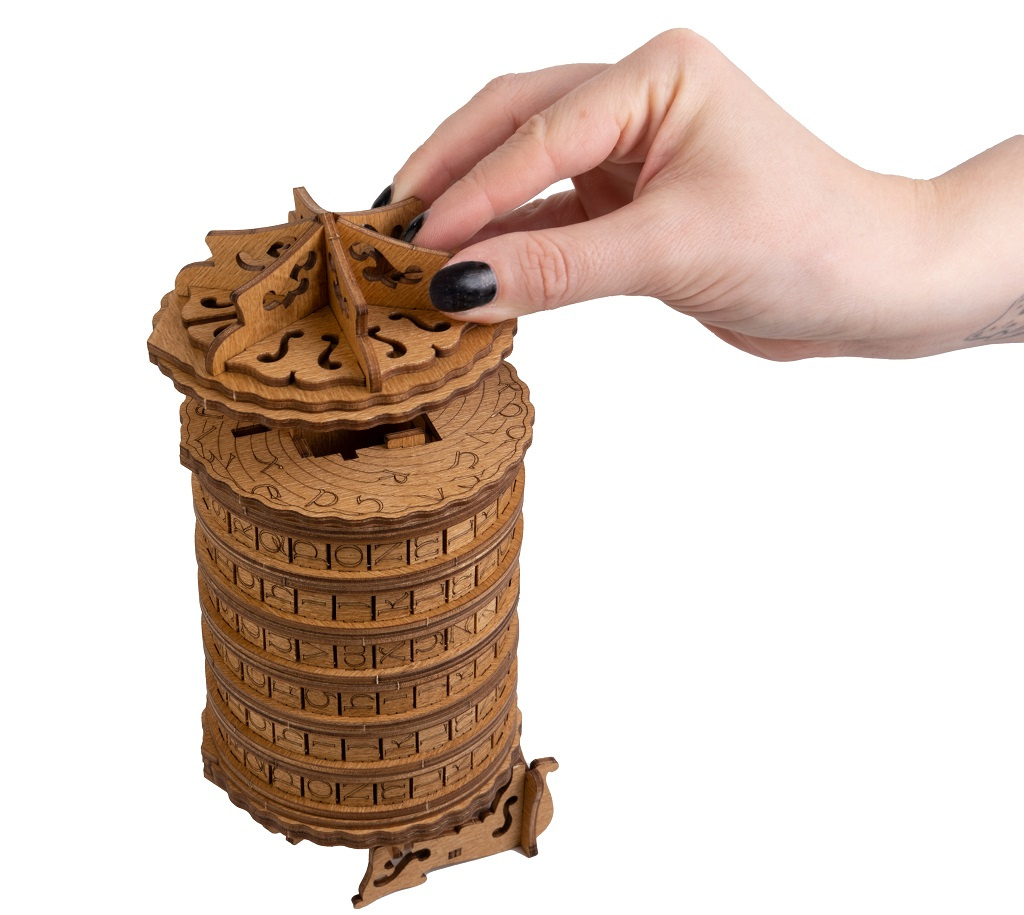Kdo chce získat dárek, musí nejprve vyřešit několik hádanek! Všichni jsme nadšeni z dávání a přijímání dárků, tak proč tento proces ještě více nezpříjemnit? Vložte dárek do vnitřní příhrátky, nastavte svůj individuální kód, zapečeťte jej, vyzvěte svého kamaráda a sledujte jak se snaží otevřít Cryptex!