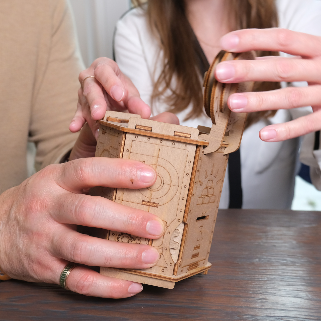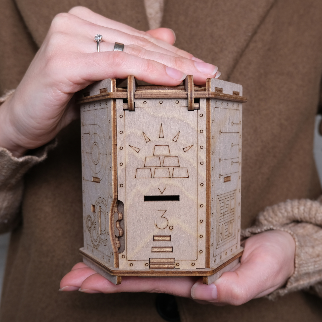 Zakuste atmosféru únikových her s originálními scénáři a hádankami u Vás doma! Každý hlavolam ukrývá malou přihrádku, kterou můžete kreativně využít k úschově vodítka ve vlastní dobrodružné hře, nebo zpestření zážitku z drobného dárku. Součástí každého balení je jednoduchý obrázkový návod, který obsahuje také QR kód vedoucí na stránku s nápovědou. Rébus má vždy jedno řešení, kvalitním provedením je ale předurčen k dalšímu použití, neváhejte jím proto dále obdarovat a vyzvat své přátele, nebo členy rodiny. Zážitek obdarovaného zde můžete ještě umocnit za použití Tajemné dárkové krabičky, kterou naleznete v naší nabídce.
