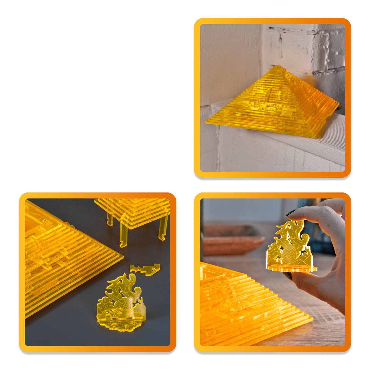 Hlavolamy Escapewelt nově v luxusním provedení z průhledného barevného akrylátu! Vysoce kvalitní a odolný materiál promění propracované puzzle v nevšední a zářivý šperk. Zakuste atmosféru únikových her s originálními scénáři a hádankami u Vás doma! Každý hlavolam ukrývá malou přihrádku, kterou můžete kreativně využít k úschově vodítka ve vlastní dobrodružné hře, nebo zpestření zážitku z drobného dárku. Součástí každého balení je jednoduchý obrázkový návod, který obsahuje také QR kód vedoucí na stránku s nápovědou. Rébus má vždy jedno řešení, kvalitním provedením je ale předurčen k dalšímu použití, neváhejte jím proto dále obdarovat a vyzvat své přátele, nebo členy rodiny.