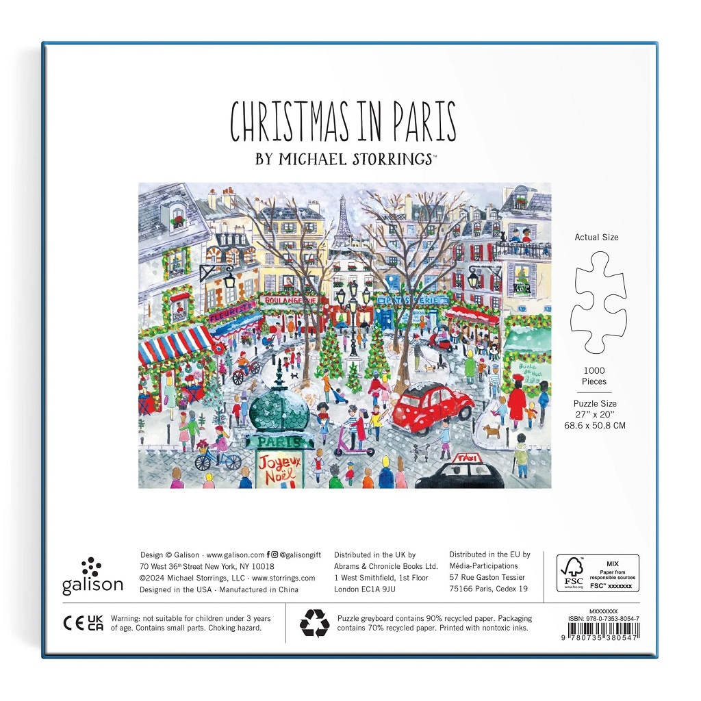 Fóliové puzzle od Michaela Storringse zobrazuje radost z Vánoc v ulicích Paříže. Toto puzzle je tou správnou výzvou pro celou rodinu. Části motivu mají speciální povrch, který se na světle z různých úhlů kovově leskne a vytváří tak dojem, že je puzzle ze zlata, stříbra a dalších lesklých kovů. Milovníci puzzle jistě ocení všechny zajímavé detaily, které po složení vytvářejí krásný obraz, který dodá nádech elegance každé místnosti nejen v době Vánoc. Ať už hledáte zábavnou aktivitu pro deštivý den nebo jedinečný dárek pro milovanou osobu, toto puzzle určitě udělá dojem. Díky svým složitým detailům a náročnému designu je toto puzzle ideální pro každého a z puzzle činí krásný a poutavý doplněk do každého domova nebo kanceláře.